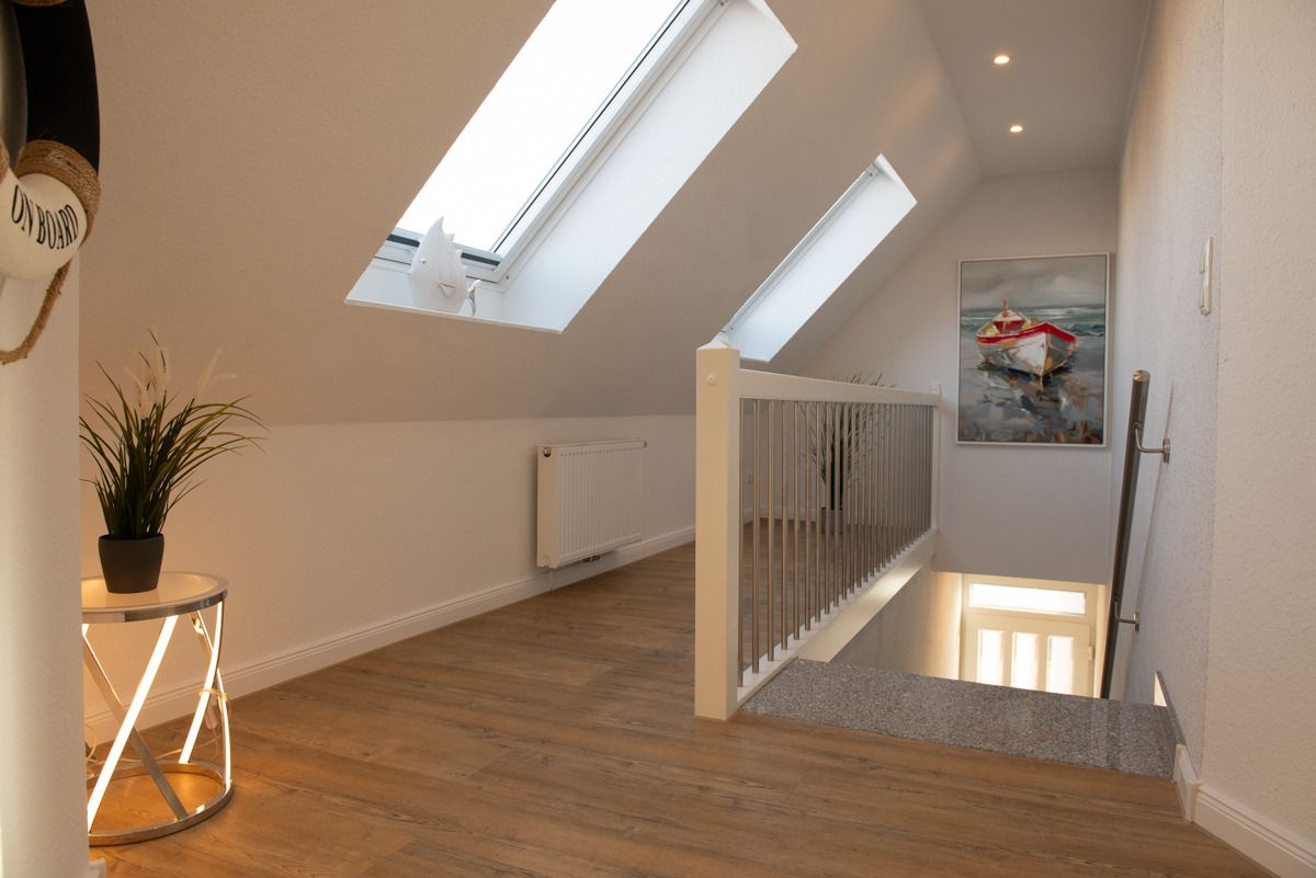 Die Ferienwohnung Deichstübchen oben befindet sich im 1. OG eines neu erbauten Ferienhauses mit insgesamt 2 Ferienwohnungen - mit je einem getrennten Eingang. Die Wohnung befindet sich direkt am Deich in unmittelbarer Nähe zum Zentrum. Im Haus verfügt jede Wohnung über einen eigenen Stellplatz für Ihren Pkw. Fahrradraum mit Stromanschluss ist vorhanden.