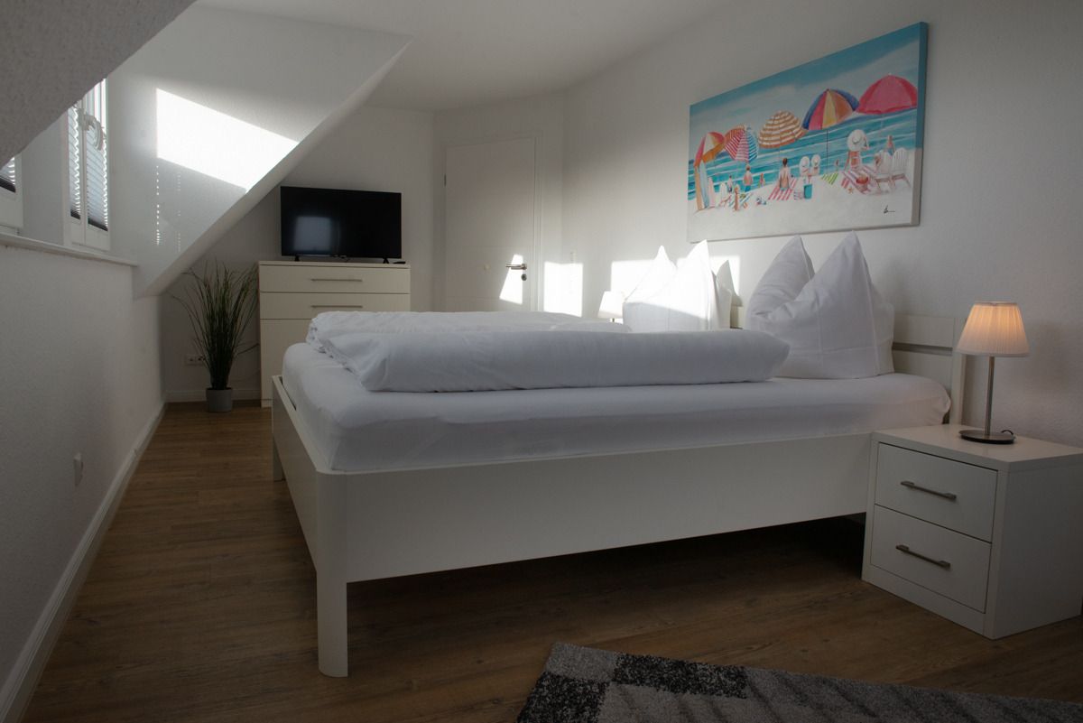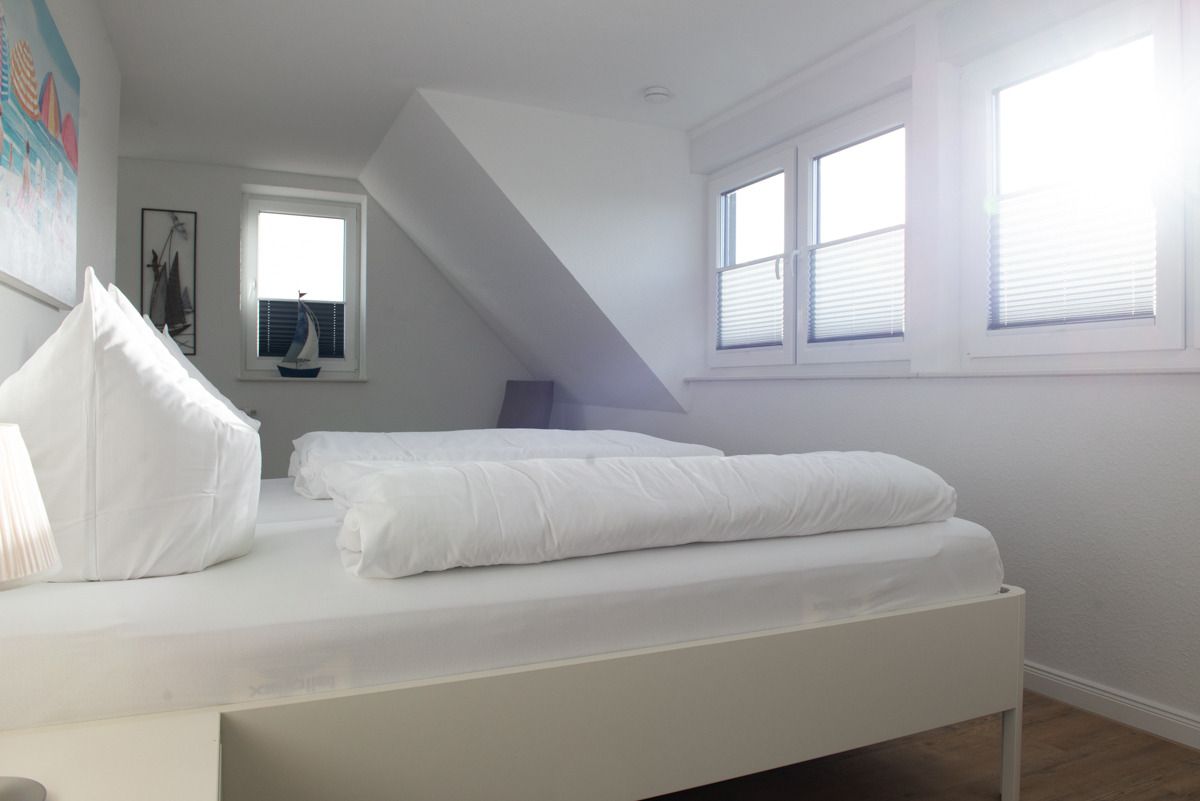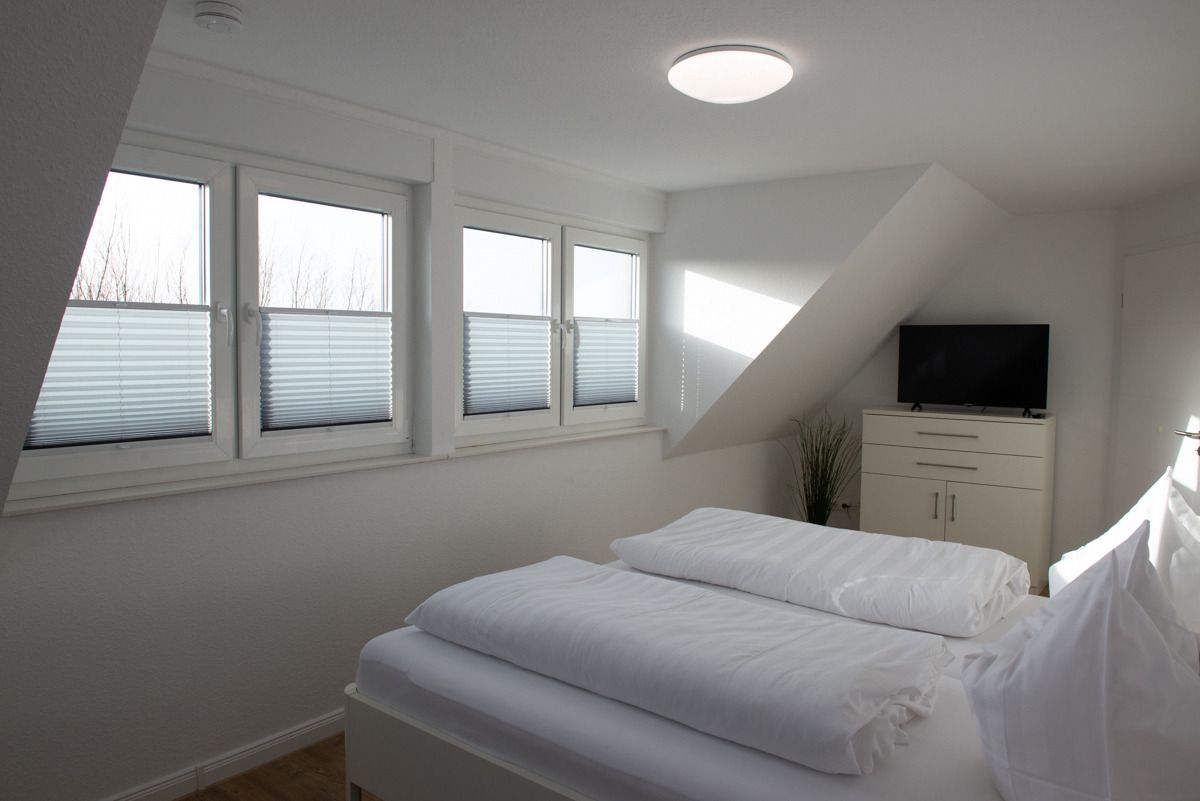 Ihr Schlafzimmer ist mit einem Doppelbett und einem Kleiderschrank mit Kleiderbügeln und einem Sat-TV Fernseher ausgestattet. Das Schlafzimmerfenster verfügt über Plissees (teilweise auch Außenjalousien). Sie haben die Möglichkeit, Bettwäsche (für jede angemeldete Person gegen Gebühr) gleich mit zu buchen. Oder Sie bringen einfach Ihre Lieblingswäsche von zu Hause mit. Einfach so, wie es Ihnen am liebsten ist.