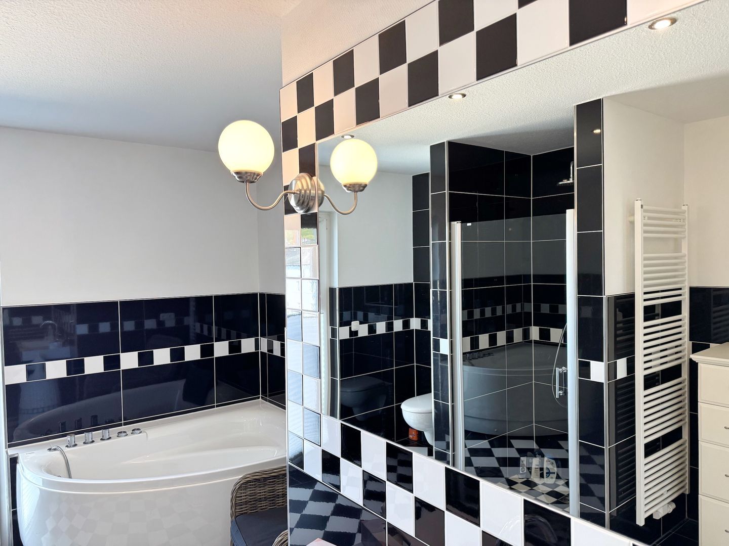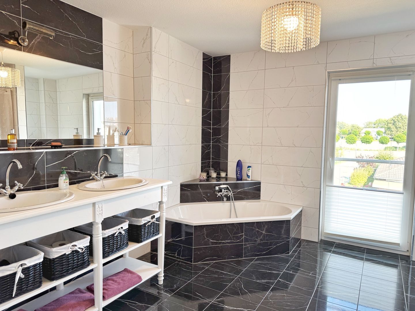 - zwei Bäder jeweils mit separater Dusche, Badewanne und WC (eine Badewanne kann als Whirlpool genutzt werden)