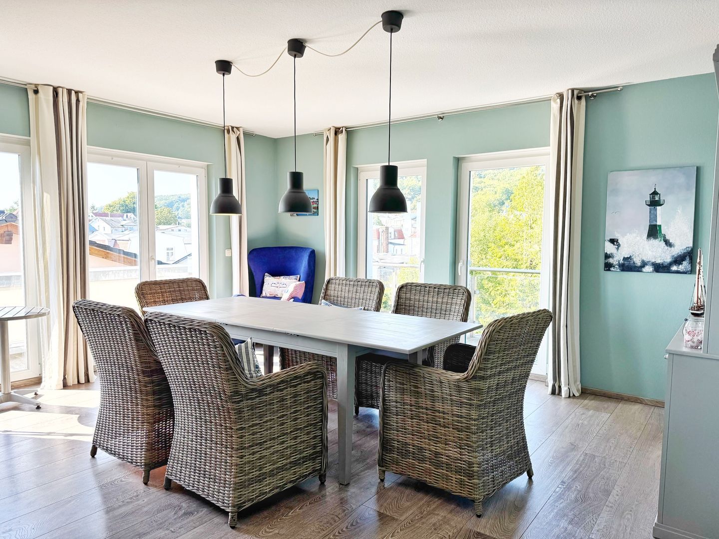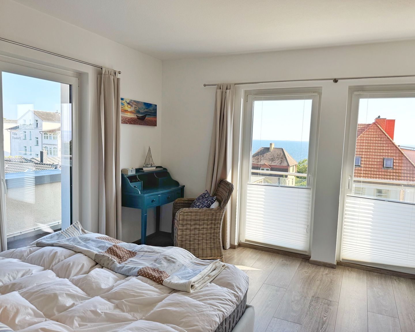 Das wunderschöne Penthouse Molenfeuer befindet sich im 2.Obergeschoß des Hauses mit herrlichem Blick über die Stadt und die Ostsee. Es hat eine Wohnfläche von 200 qm und bietet Platz für bis zu 8 Personen.