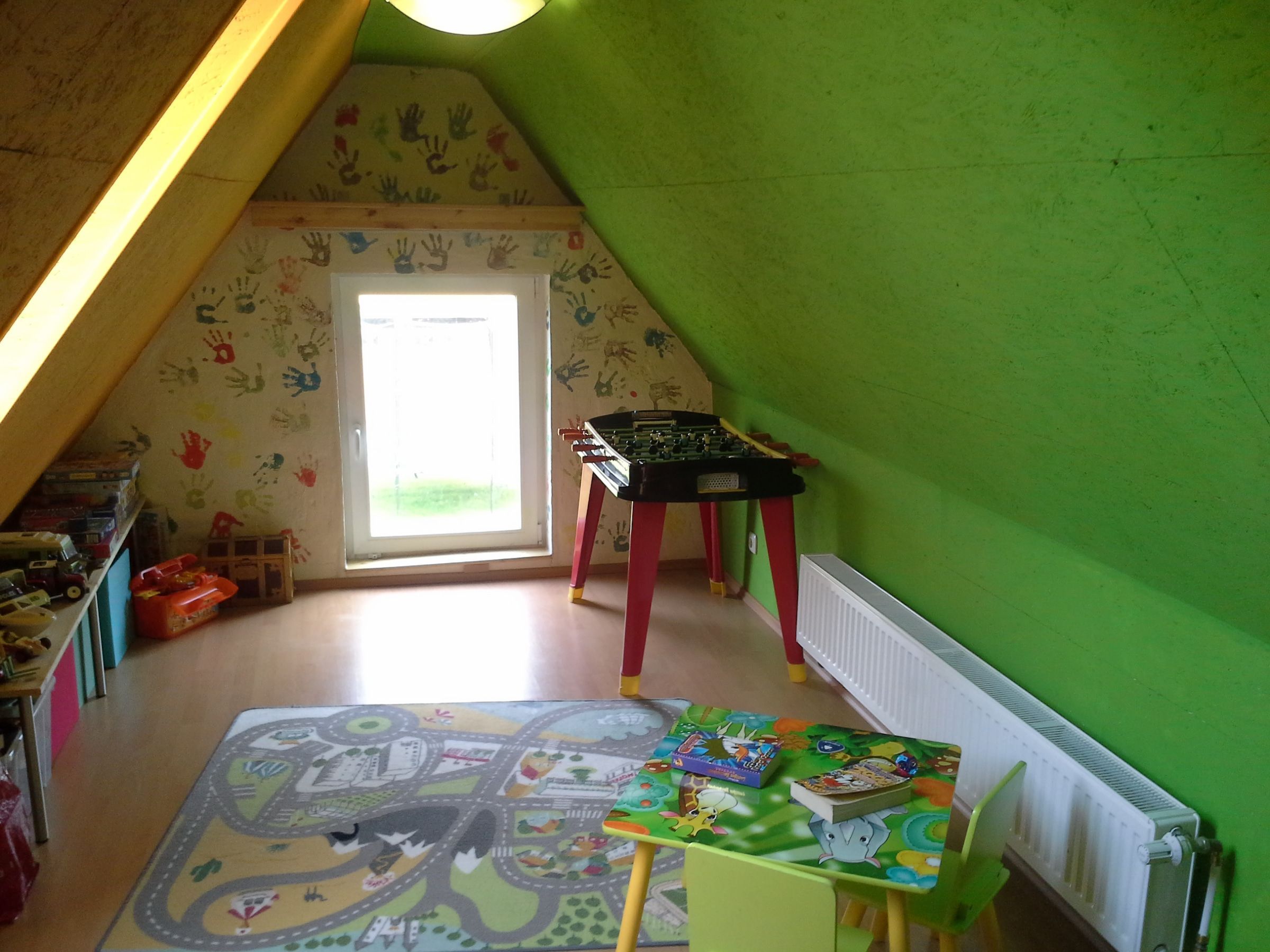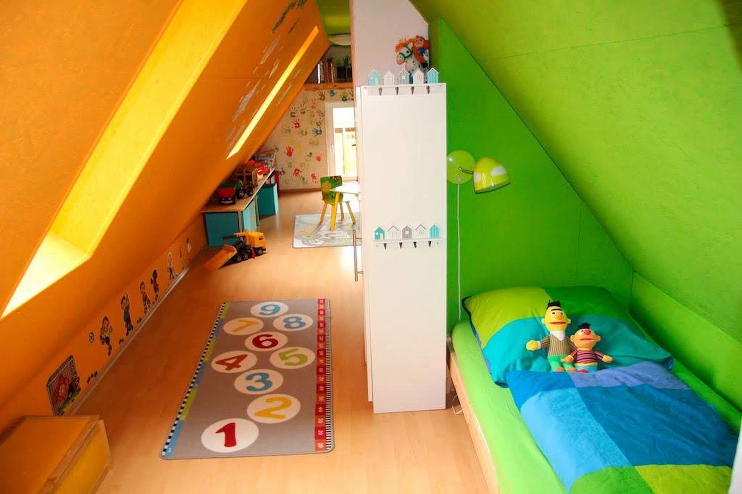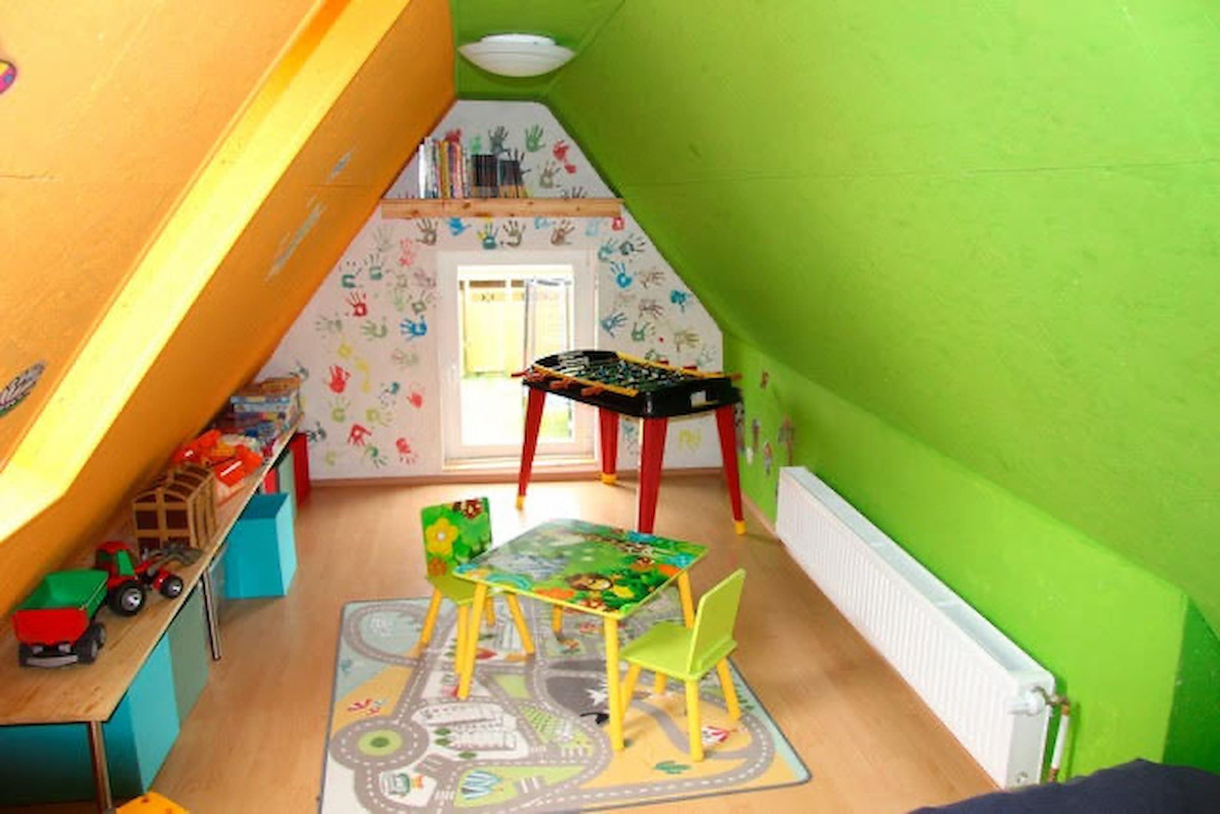 Besonders Familien mit Kindern werden den großen 800 m² Garten lieben. Trampolin, Schaukelgerüst und Sandkasten bieten Abwechslung und viel Platz zum Toben. Ein besonderes Highlight ist der Spielboden im Obergeschoss: Über einen kleinen Zugang gelangen Kinder in ihr eigenes Reich mit gemütlichen Bettnischen, die sich tagsüber zum Spielen und abends als Schlafplätze eignen.