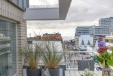 Das Penthouse befindet sich im 5. Obergeschoss, dem sogenannten Staffelgeschoss. Der Fahrstuhl fährt bis zum 4. Obergeschoss, von dort führt eine Treppe in das exklusiv gelegene Appartement. Im Haus: Waschmaschine und Trockner zur gemeinschaftlichen Nutzung.