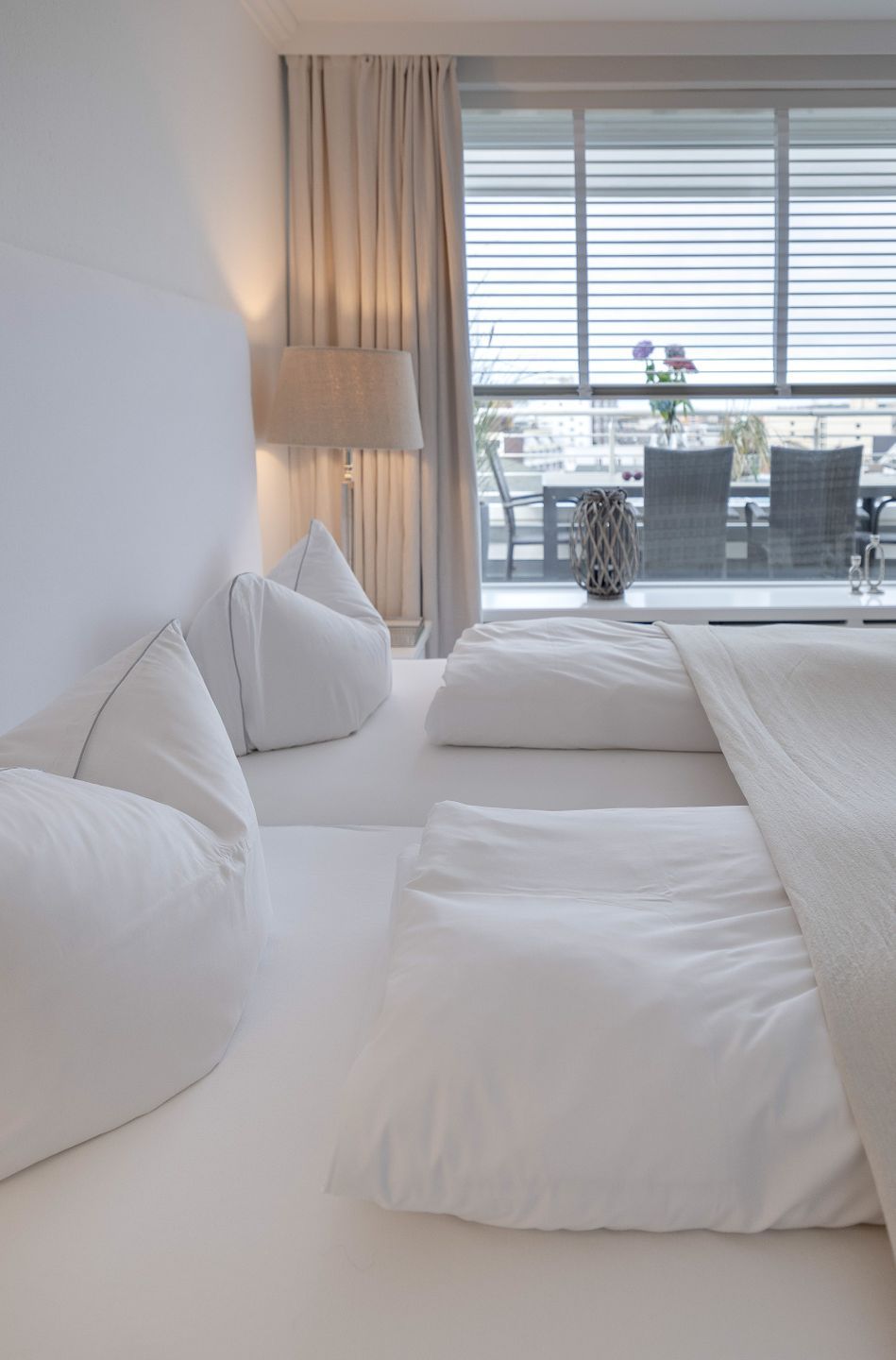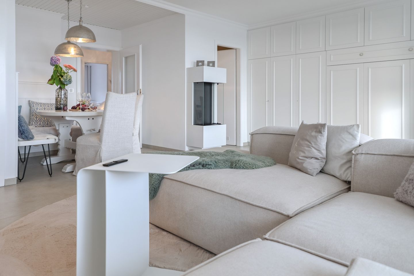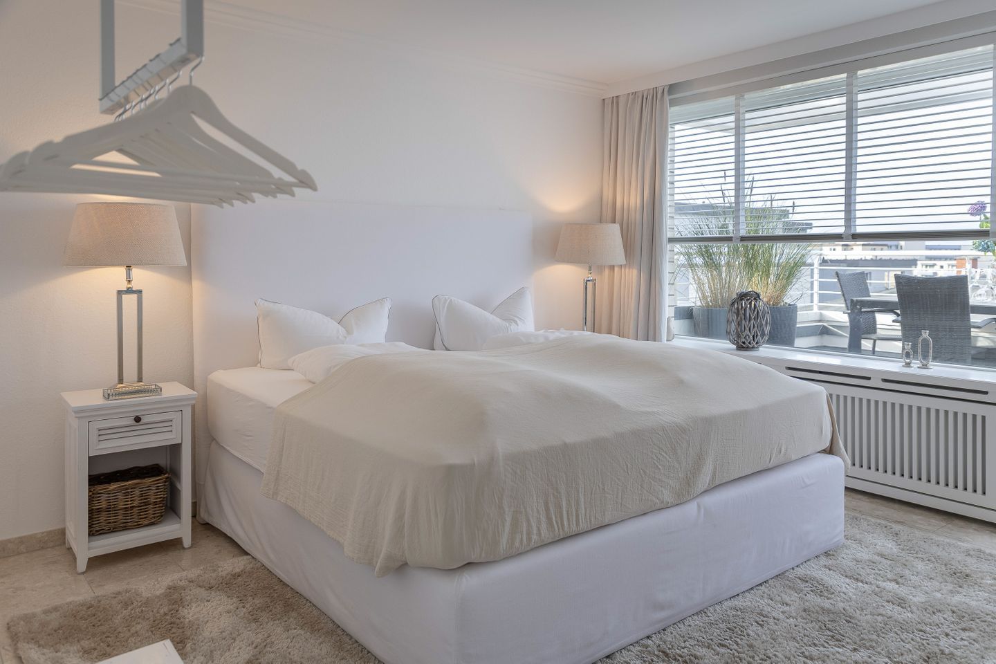 Auf rund 92 m² Wohnfläche erwartet Sie ein lichtdurchfluteter, stilvoll eingerichteter Wohnraum mit moderner Ausstattung und hochwertigem Fliesenboden. Zwei helle Schlafzimmer bieten komfortable Rückzugsmöglichkeiten, während im Wohnbereich u.a. ein elegantes Schrankbett zwei zusätzliche Schlafplätze für insgesamt bis zu sechs Personen bereithält. Zwei moderne Bäder – eines mit Dusche, das andere als Vollbad – sorgen für höchsten Komfort, auch bei mehreren Gästen.W-LAN, Smart TV, Nespresso sind selbstverständlich vorhanden.