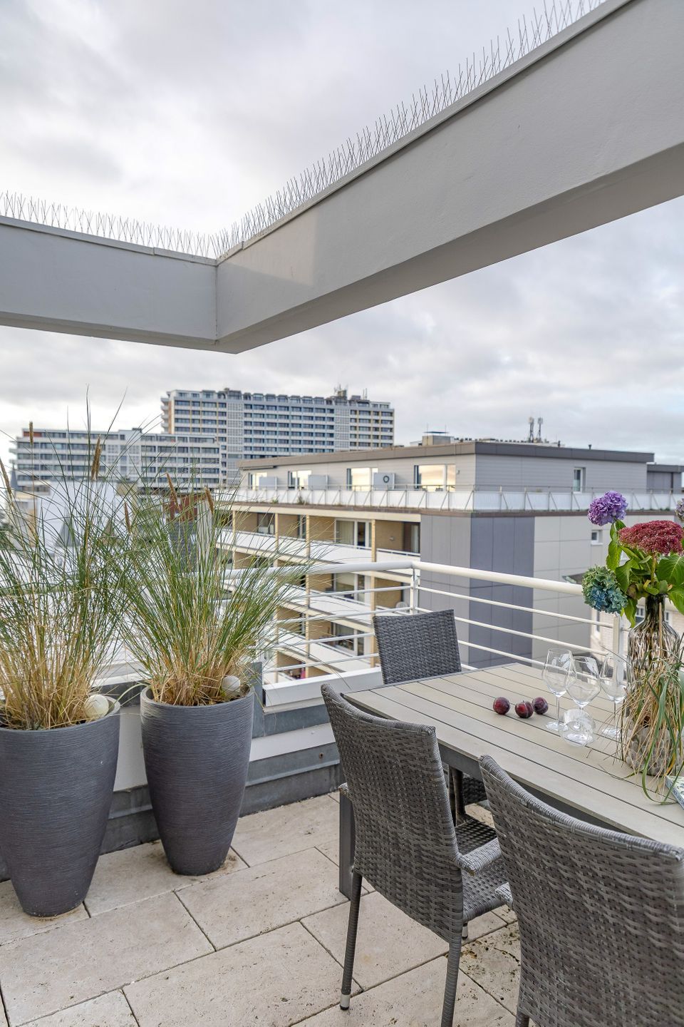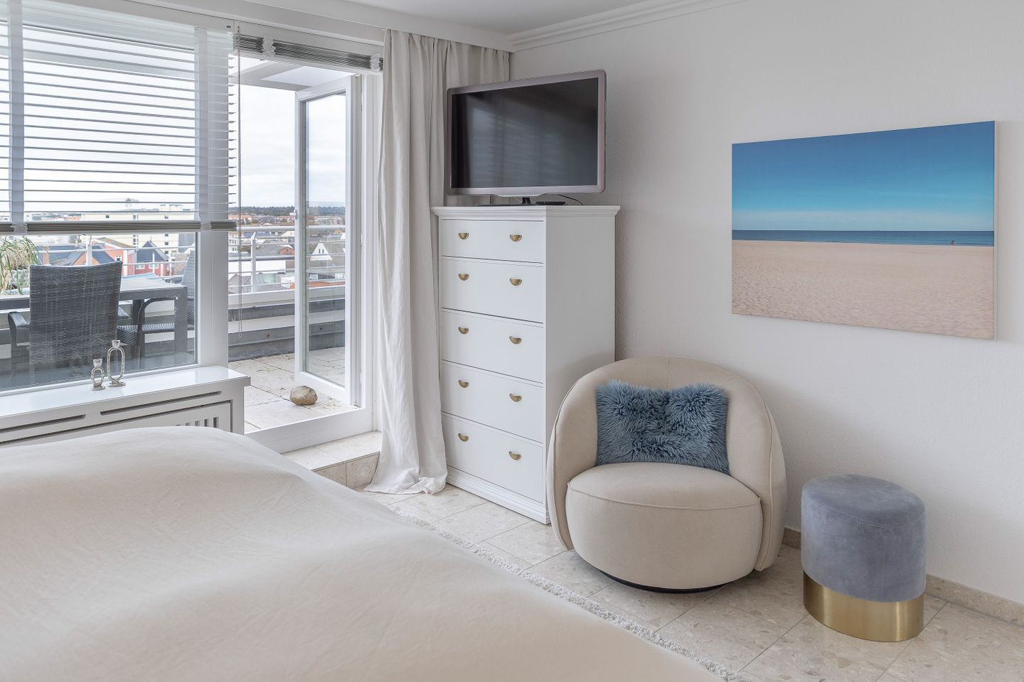 Willkommen in einer der wohl außergewöhnlichsten Ferienwohnungen in Westerland! Das großzügige modern eingerichtete Penthouse Whg. 53 im 5. OG, in der Friedrichstraße 23 verbindet luxuriösen Wohnkomfort mit traumhafter Lage – nur wenige Schritte vom Strand entfernt und mit einem beeindruckenden Blick über die Stadt bis hin zur Nordsee.