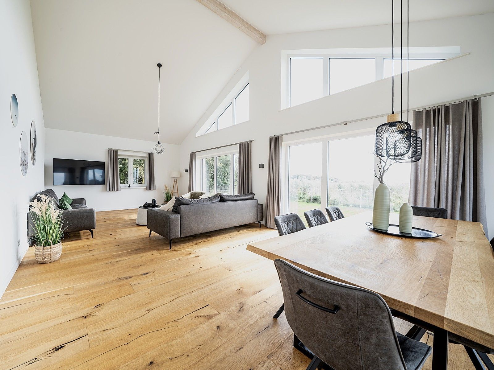 Der helle Wohnbereich mit offener Gestaltung lädt zum gemeinsamen Kochen, Essen und Entspannen ein. Sechs Schlafzimmer und vier Bäder sorgen für ausreichend Privatsphäre, während die hauseigene Sauna nach einem Tag an der frischen Meeresluft wohltuende Entspannung verspricht.