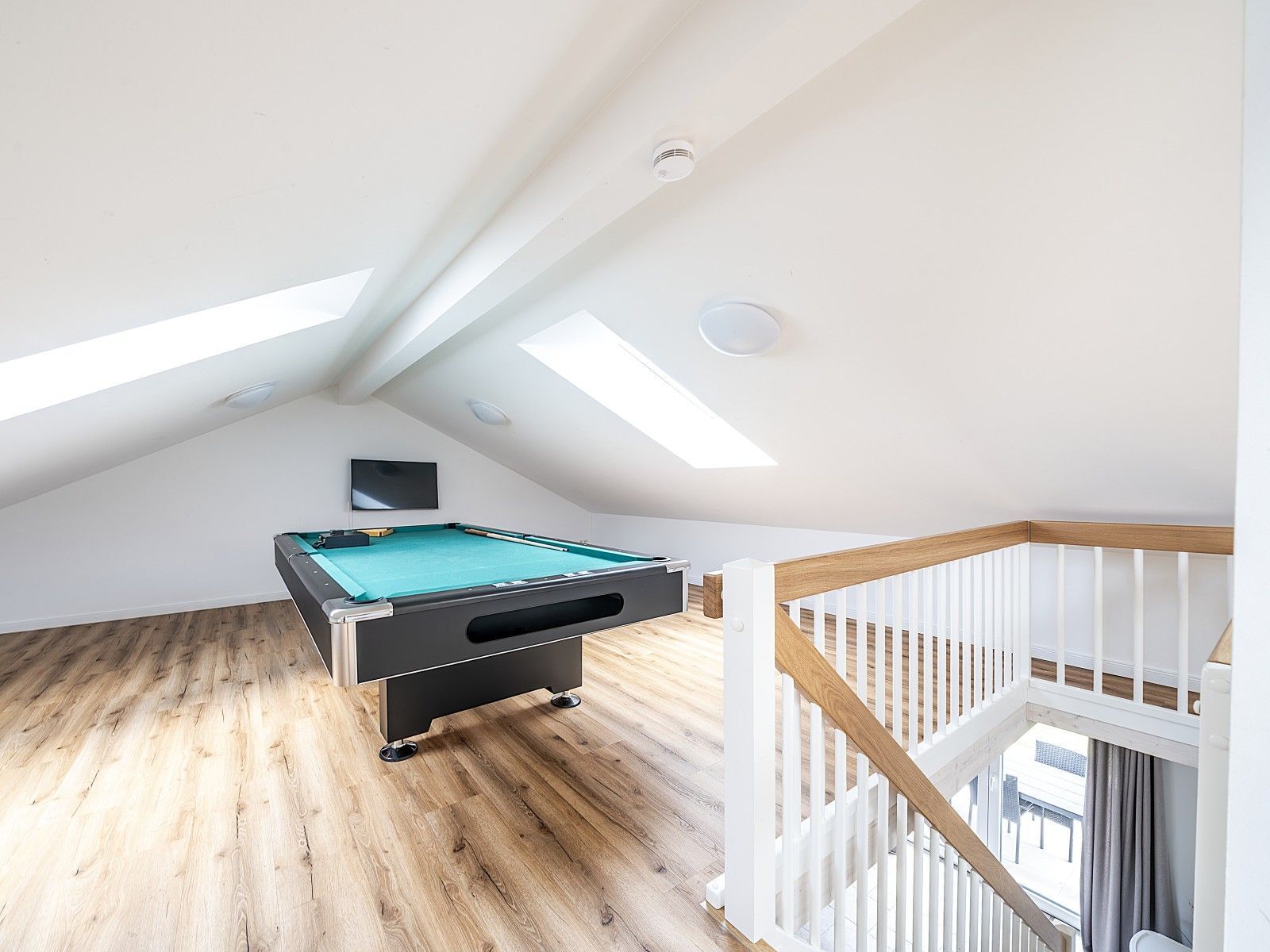 • Galerie mit Tischkicker, Billard, Dart und weiterem TV