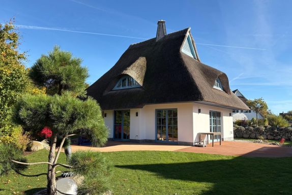 Dieses wunderschöne Ferienhaus mit traditionellem Reetdach, ortstypischer Feldsteineinfriedung und eingezäuntem Grundstück liegt in einer neuen Ferienhausanlage. Es bietet großzügig Platz für sechs Feriengäste (zwei Schlafzimmer mit Doppelbett, davon eins im EG, ein Schlafzimmer mit Kinderetagenbett) und verfügt über zwei hochwertige Bäder und ein Gäste-WC, davon ein Bad mit Badewanne und Dusche, ein Bad mit Dusche und Sauna. Im Erdgeschoss befindet sich ein ca. 30 qm großer Wohn-Essbereich mit gemütlichen Sitzmöglichkeiten, Kaminofen, SAT-TV mit Sky und neben einer komplett ausgestatteten Küche ist ein großer Esstisch für sechs Personen vorhanden.