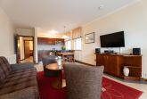 Wohn- Essbereich: Schlafcouch, 2 Sessel, LCD-TV, Stereo-Anlage, WLAN-Anschluss, großer Essplatz mit 4 Stühlen