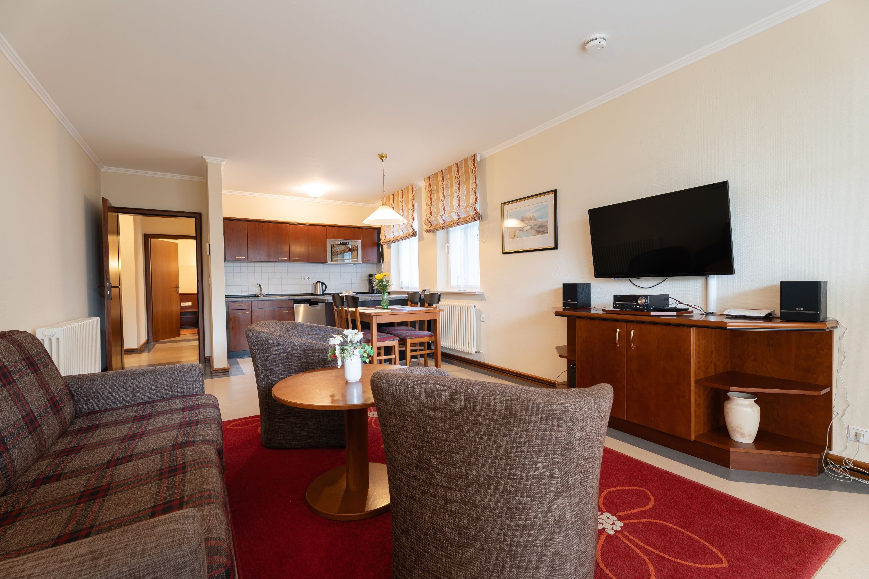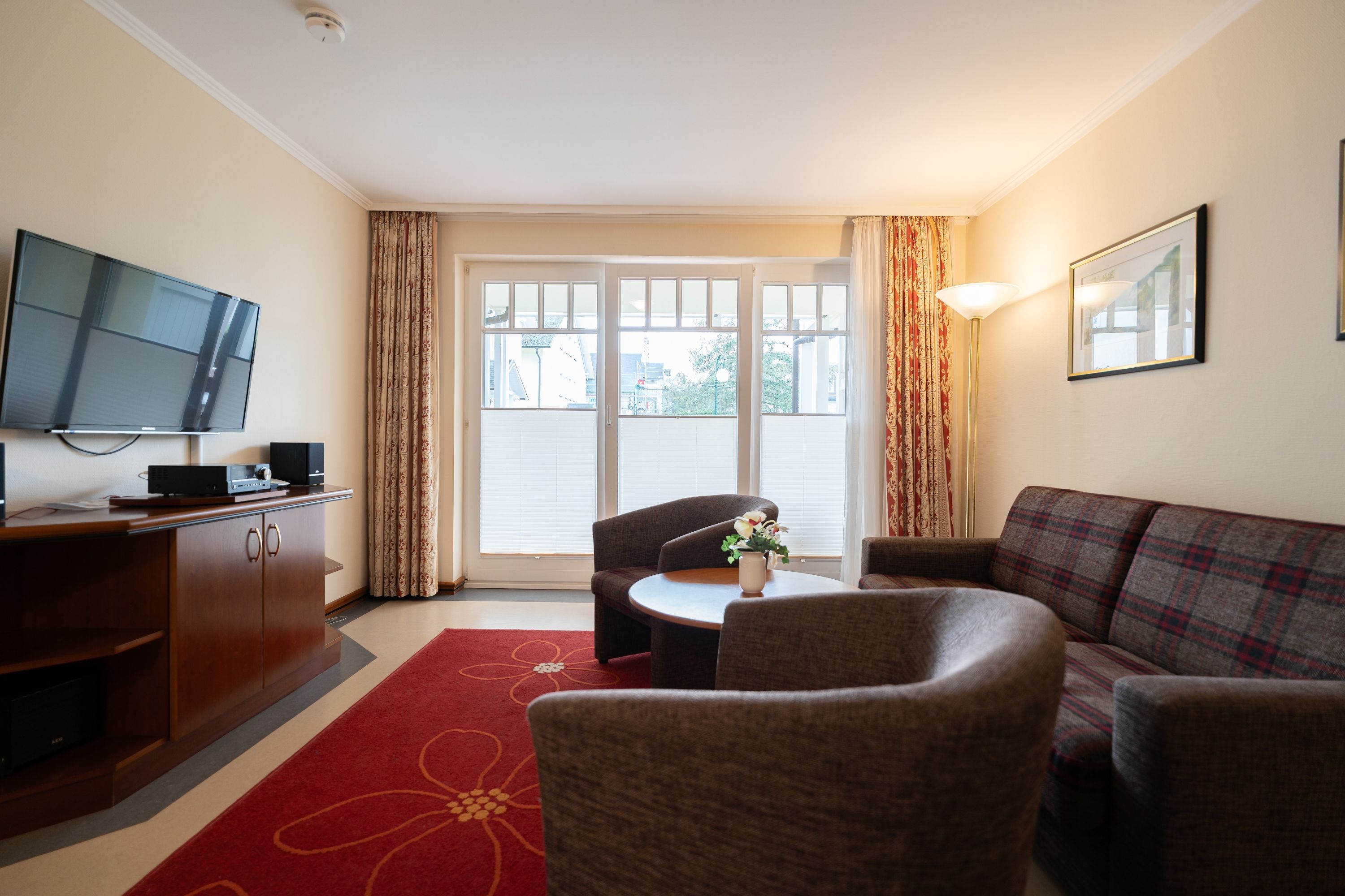 In der Ende der 90er Jahren neu gebauten Anlage gibt es großzügige Ferienwohnungen mit 1 Schlafzimmer, Internet und Terrasse oder Balkon. Je ein Außenstellplatz oder ein Tiefgaragen-Stellplatz stehen pro Wohnung zur Verfügung.
