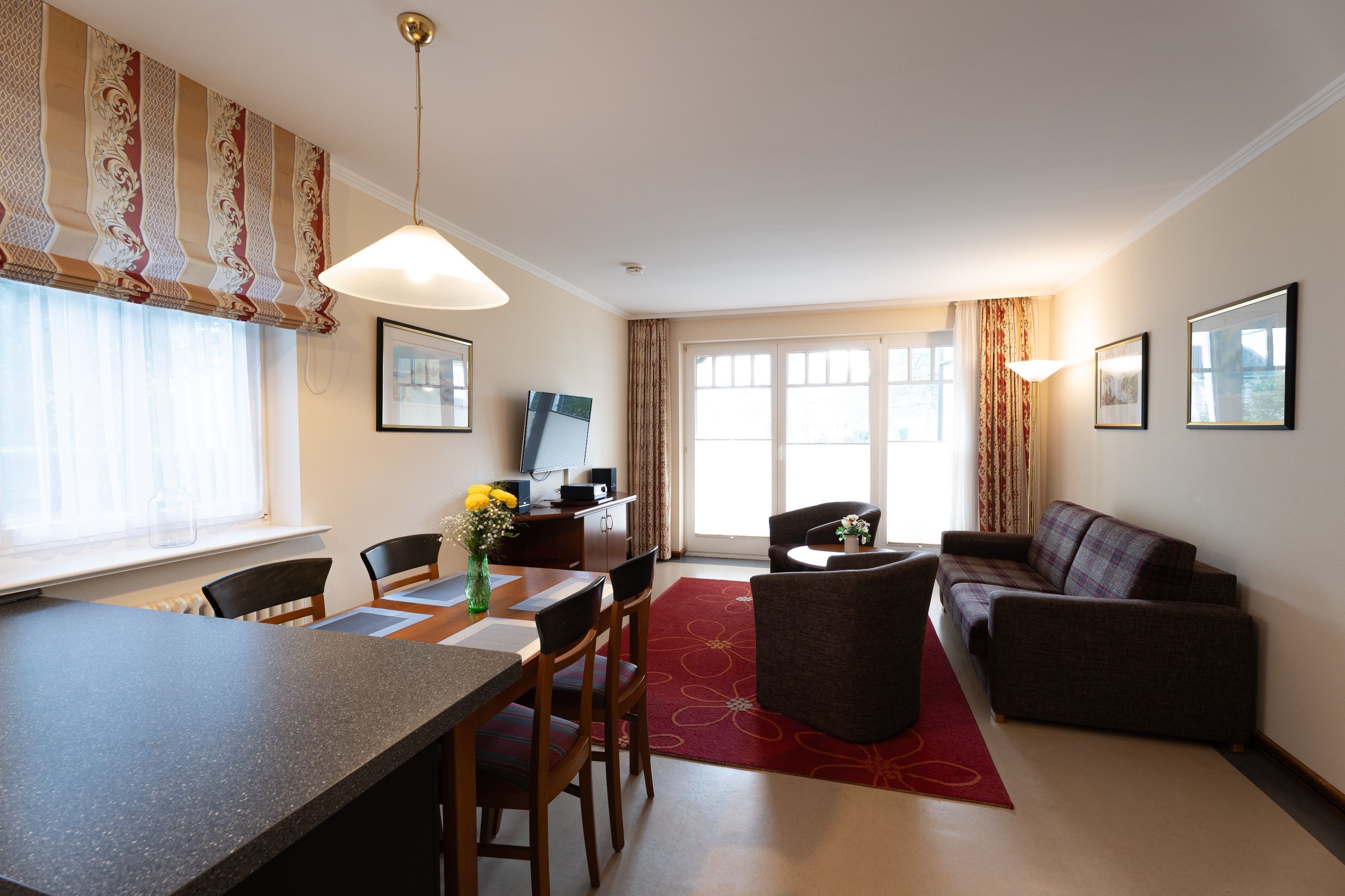 Im Dünenpark Binz befindet sich im Haus 2 die großzügige Komfort-Ferienwohnung im Erdgeschoss (2 Zimmer) mit 2 Schlafzimmern und einere großen Terrasse