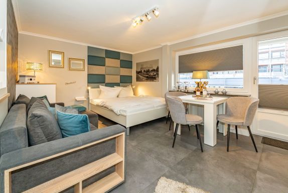 Die Ferienwohnung Dünenkoje App.205 ist ein kompaktes 1-Zimmer-Apartment mit 30 m² im 2. Stock eines Hauses mit Aufzug – ideal für zwei Personen, die kurze Wege und eine zentrale Lage schätzen. Sie wohnen in der Andreas-Dirks-Str. 5 in Westerland auf Sylt, zugleich in der Stadt und am Meer: Strand und Meer sind jeweils nur 100 m entfernt,