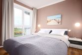 Der helle Wohnbereich lädt mit einem komfortablen Sofa und Fernseher zu entspannten Stunden ein. Von hier gelangen Sie direkt auf den Balkon, der Ihnen mit gemütlichen Sitzmöglichkeiten einen wunderbaren Platz zum Verweilen bietet. Die offene Küche ist mit Backofen, Geschirrspülmaschine, Kühlschrank, Cerankochfeld und Kaffeemaschine bestens ausgestattet und grenzt an den Essbereich, der zum gemeinsamen Genießen Ihrer Mahlzeiten einlädt. Im Schlafzimmer mit Meerblick sorgt ein bequemes Doppelbett (ca. 160x200 cm) für erholsamen Schlaf. Das moderne Badezimmer verfügt über eine ebenerdige Dusche und WC.