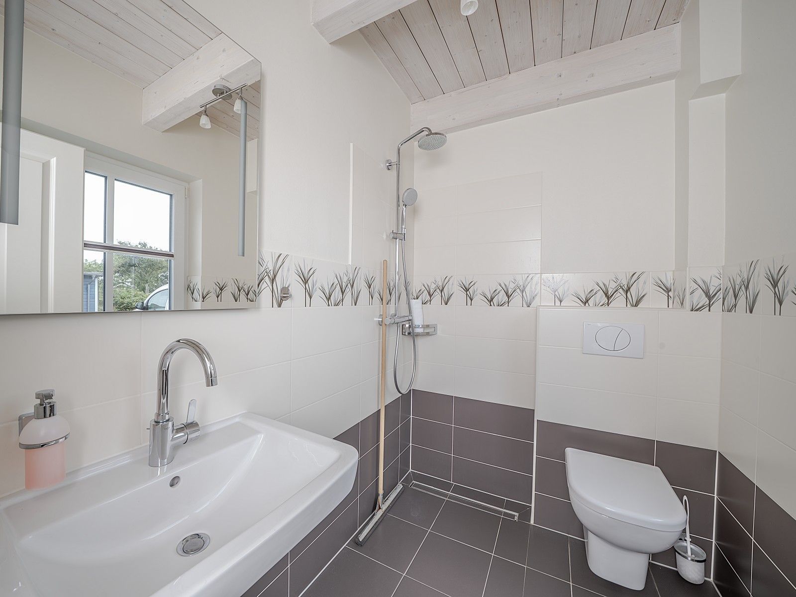 Vier Schlafzimmer und zwei Badezimmer eines davon im Erdgeschoss mit ebenerdiger Dusche sorgen für Komfort, auch wenn nicht alle Gäste Treppen steigen möchten. Im Obergeschoss erwartet Sie ein Wellnessbereich mit großer Sauna und Badewanne.