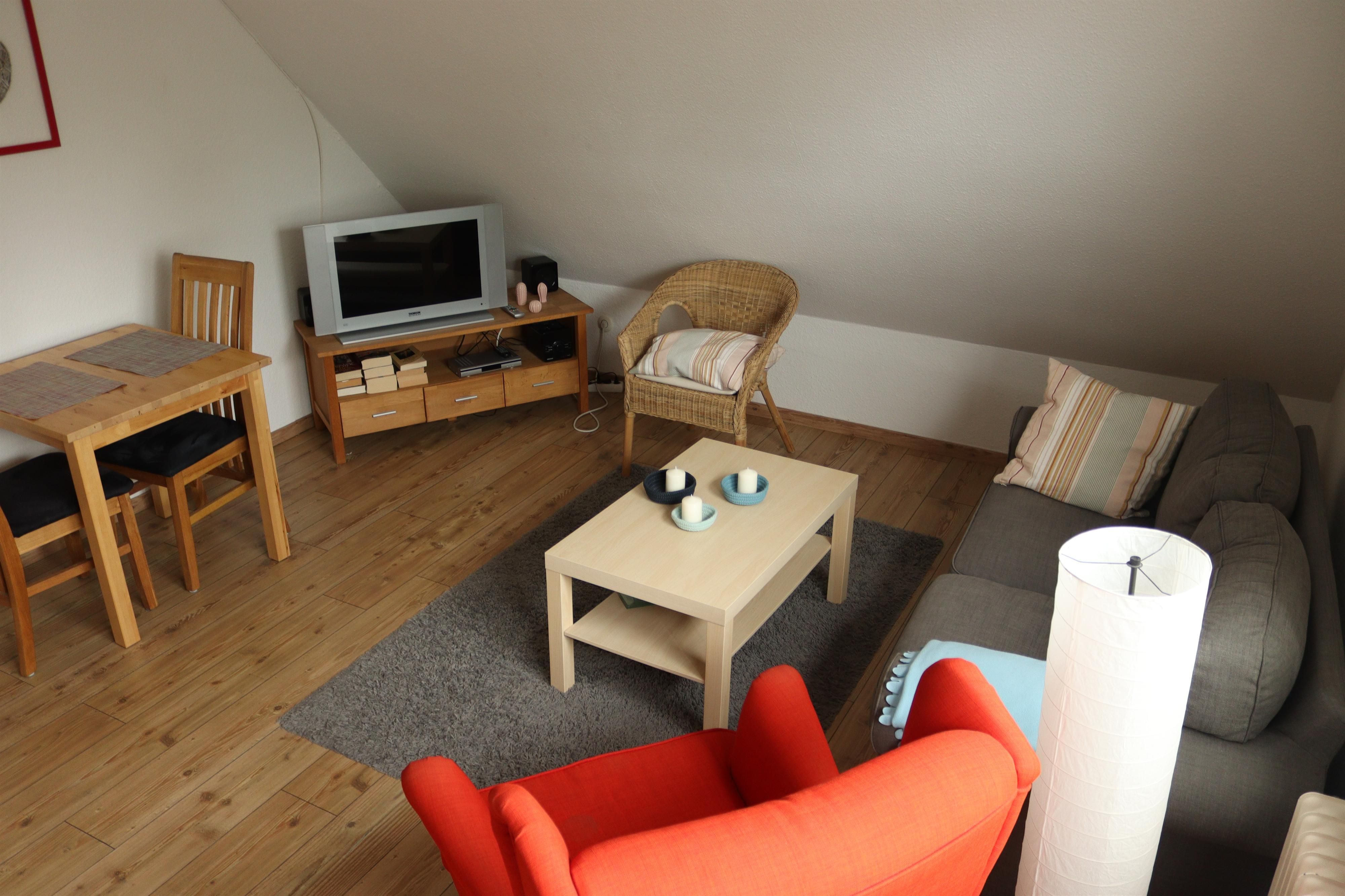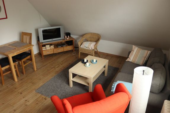 Willkommen in Ihrer Ferienwohnung Roter Sand. Diese Wohnung im 1. Obergeschoss bietet bis zu zwei Personen den Komfort, den es braucht für einen gemütlichen Urlaub. Im Schlafzimmer mit Doppelbett finden Sie Ruhe, das Bad mit Dusche und WC bietet genügend Platz. In der gut ausgestatteten Küche können Sie Ihr leckeres Frühstück, sowie Ihr Lieblingsessen zubereiten und im angrenzenden Ess- und Wohnbereich die Mahlzeiten und schöne Stunden genießen. Das WLAN ist im Preis inbegriffen. Ihr Haustier ist ebenfalls herzlich willkommen. Es handelt sich um eine Nichtraucherwohnung! Eine überdachte Terrasse am Haus bietet Ihnen Platz für gemütliche Abende. Genießen Sie Ihren Urlaub in ruhiger Lage und nahe am Strand!