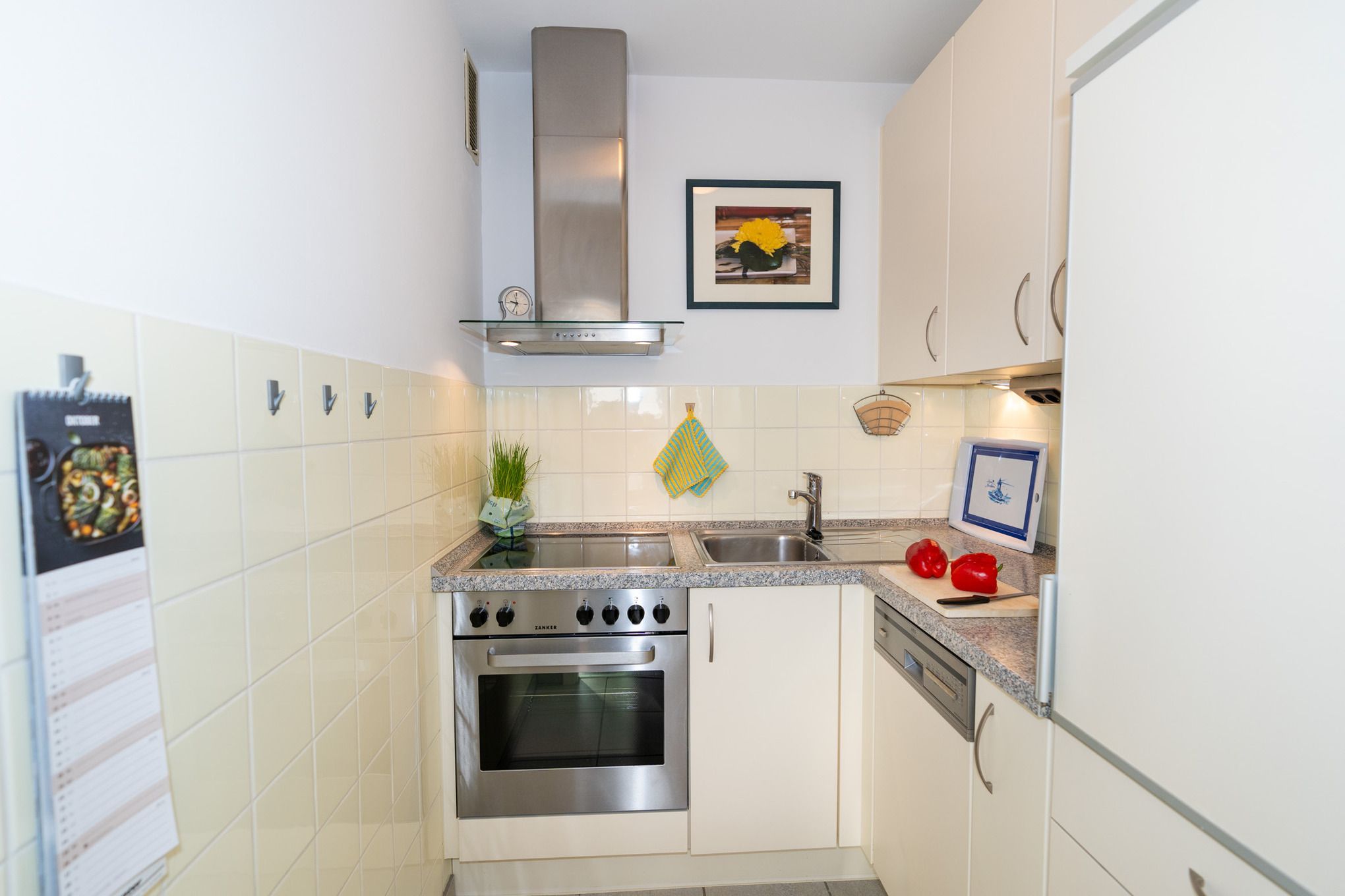 Die separate Küche mit Cerankochfeld (4 Felder), Backofen, Spülmaschine, Kühlschrank mit Gefrierfach und vielen weiteren Elektro-Kleingeräten wie Mikrowelle, Toaster, Kaffeemaschine usw. bietet alles für die Zubereitung Ihrer Mahlzeiten.