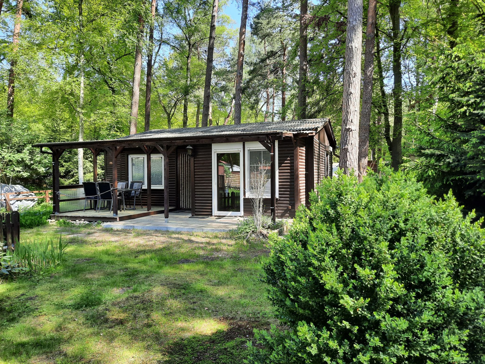 Der idyllisch gelegene Bungalow empfängt bis zu 4 Personen mit einem gemütlichen Wohnbereich mit 2 Sofas. Das besondere Highlight ist hier der schöne Pelletofen, der auch bei kühleren Temperaturen für wohlige Wärme sorgt (Pellets bitte selbst mitbringen). In insgesamt 2 Schlafzimmern lässt es sich auf einem Tandembett für 2 Personen und auf einem Doppelbett (ebenfalls für 2 Personen) wunderbar schlummern. Die in den Wohnbereich integrierte Küchenzeile ist mit einer Herdplatte mit 2 Feldern, einem Kühlschrank mit Gefrierfach, einer Kaffeemaschine und einem Wasserkocher eingerichtet. Im Bad mit Fenster befinden sich eine Dusche, ein Waschbecken und das WC. Ein schöner Garten und eine überdachte Terrasse mit Gartenmöbeln runden diese Unterkunft ab.