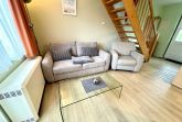 Gemütliche Ferienwohnung auf 42qm. Unten Wohnbereich mit Sofa, Sessel, FlachTV, Radio und kleiner Küchenzeile mit sehr guter Ausstattung. Angeschlossener Terrasse mit Gartenmöbeln zum Sonnen oder einfach nur entspannen.