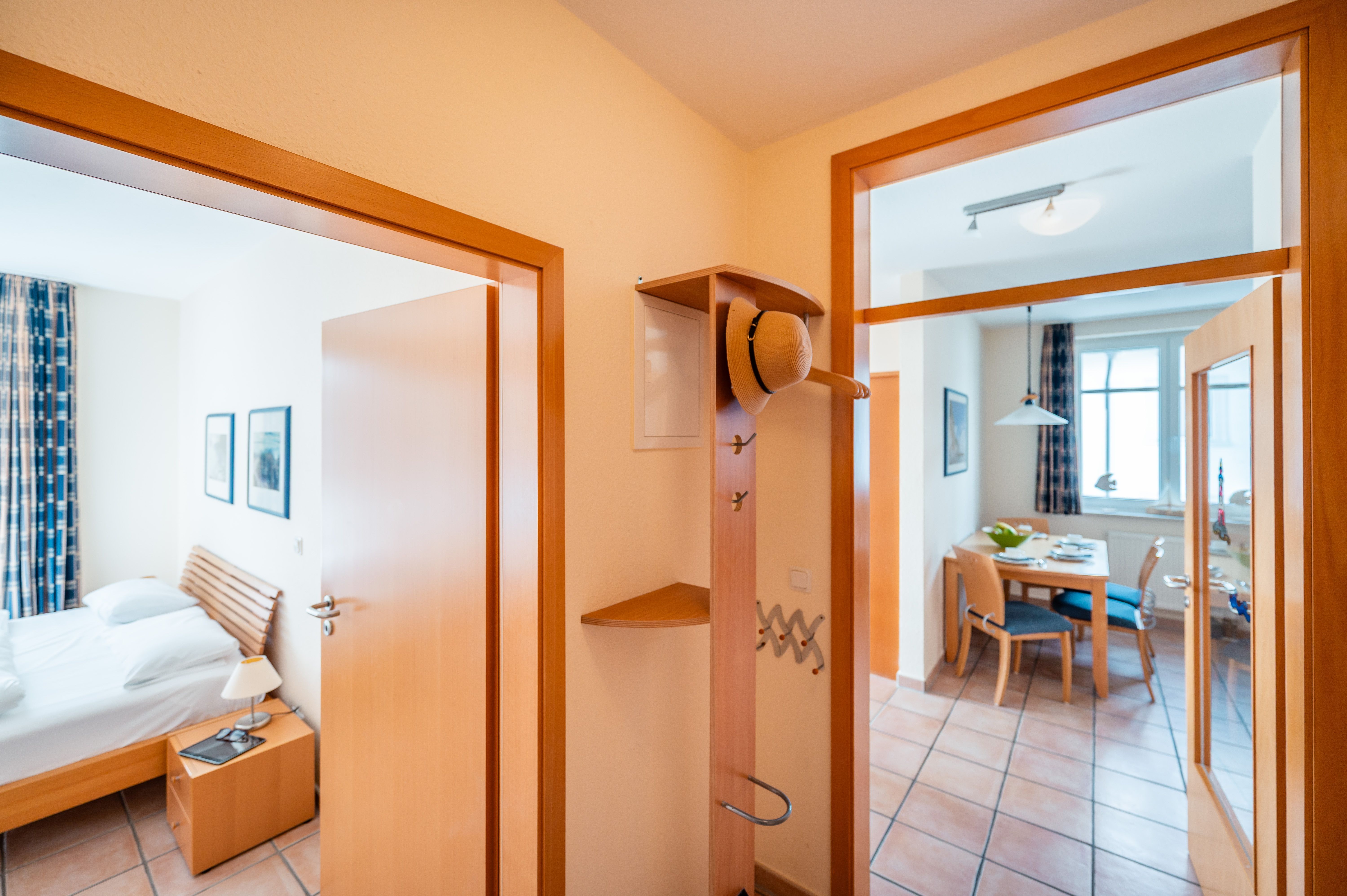 Jedes der acht anspruchsvoll möblierten 4-Sterne Ferienwohnungen verfügt über mindestens ein separates Schlafzimmer, eine hochwertige Küche, ein komfortables Duschbad, eine Loggia, Balkon oder Terrasse (teilweise sogar mit Meerblick!) sowie über einen Garagenstellplatz. Die ideale Ferienwohnung für zwei bis vier Personen.
