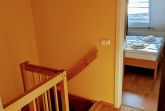 In der oberen Ebene befinden sich zwei Schlafräume mit Verdunklungsmöglichkeit und das Badezimmer mit großem Fenster.