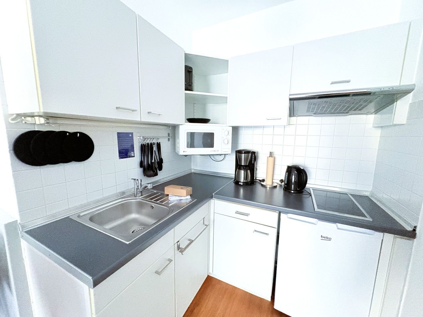 Die Ferienwohnung besteht aus einem gemütlichen Schlafzimmer, einem Wohnzimmer, einer voll ausgestatteten Küchenzeile mit Kühlschrank und Kaffeemaschine sowie einem Badezimmer mit Dusche.