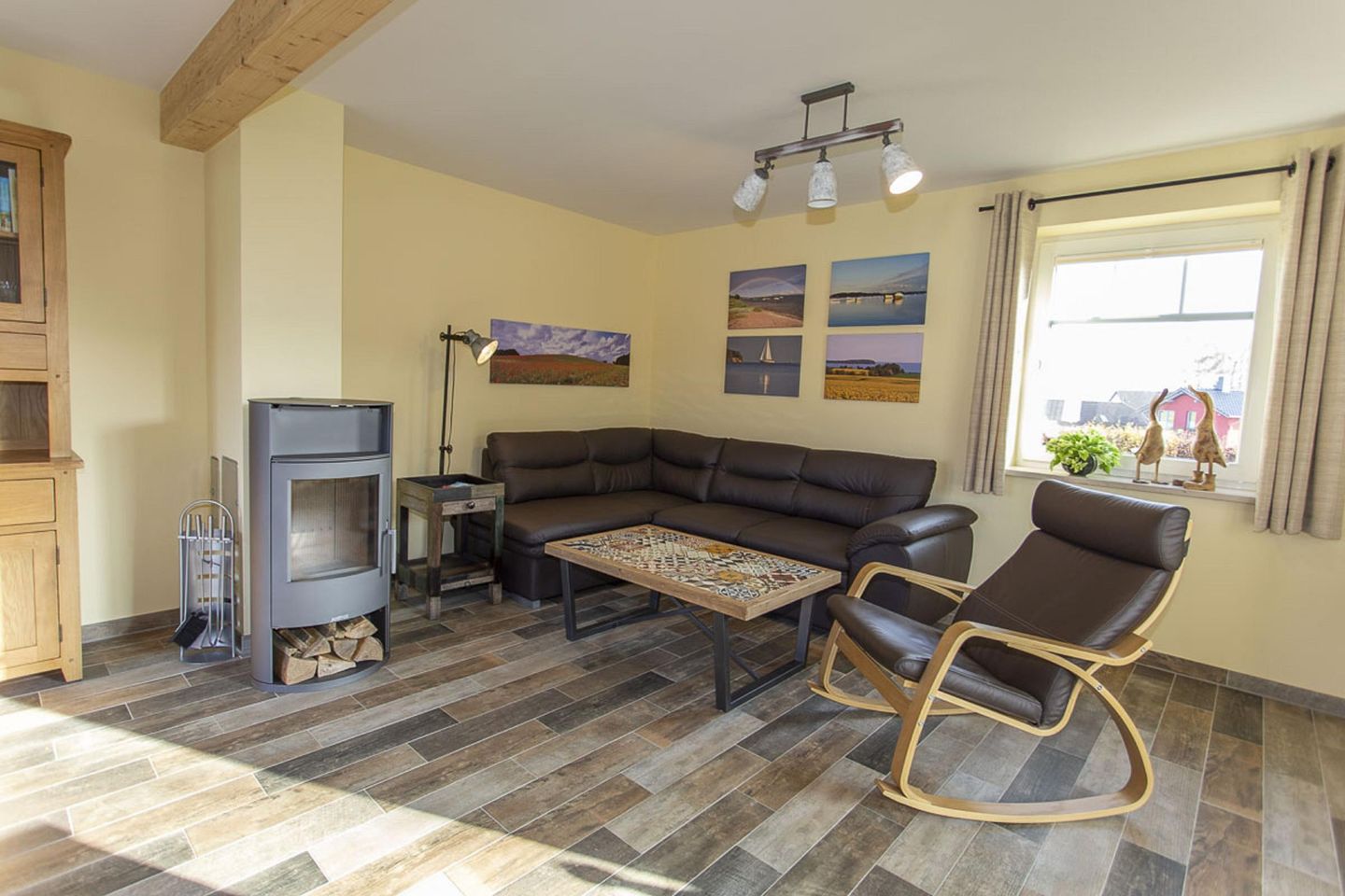 WOHNEN // Wohnraum, Sitzgarnitur mit bequemer Couch, Kaminofen, Flachbild-TV ++