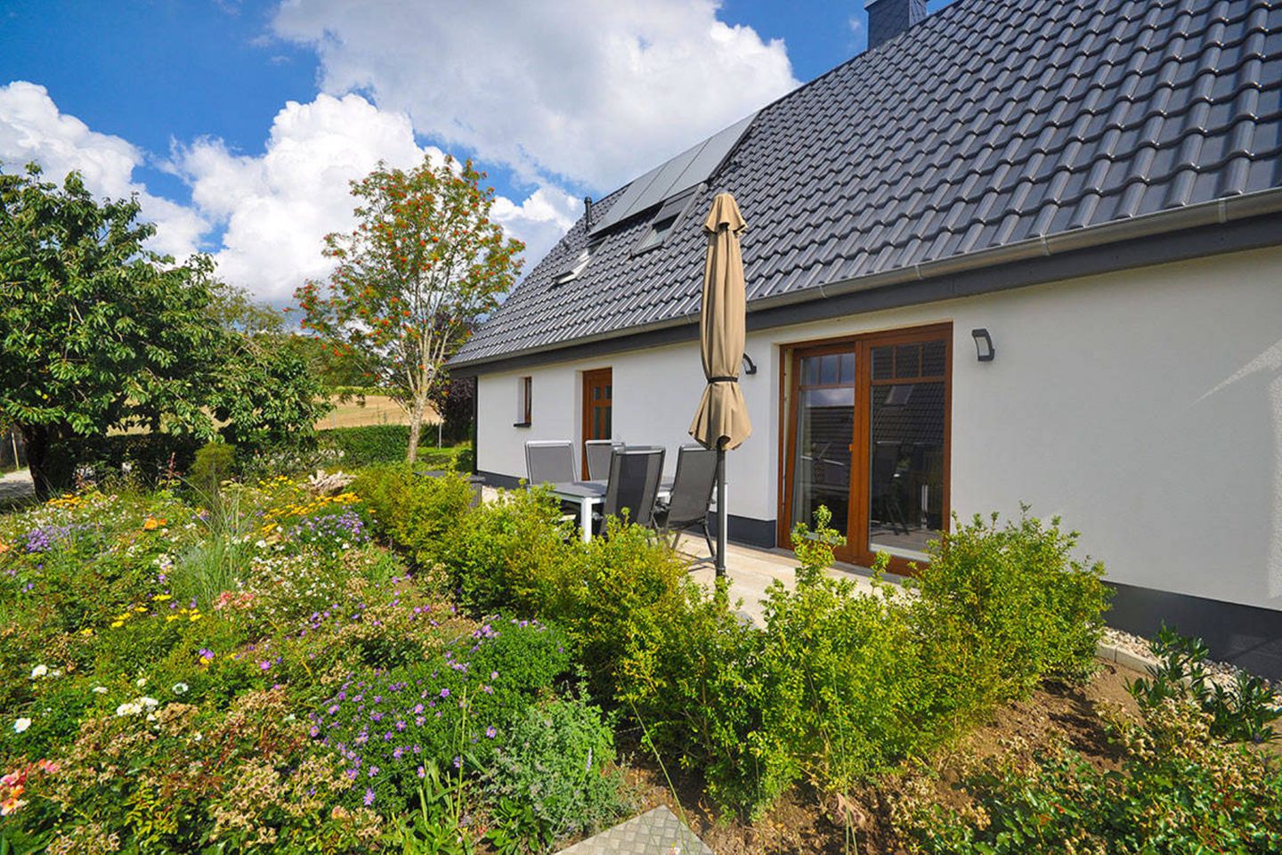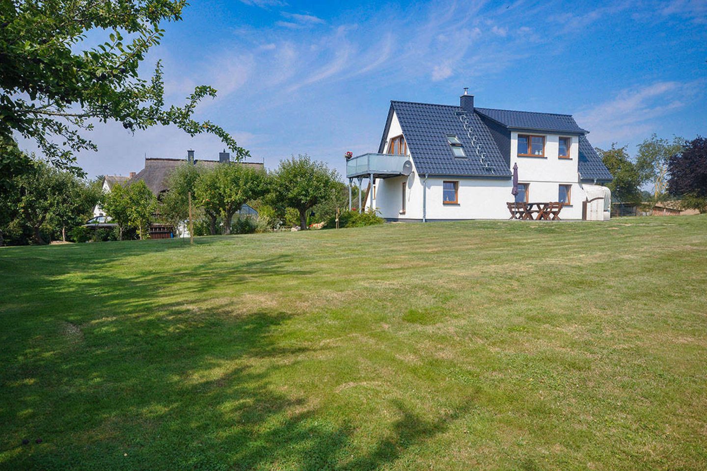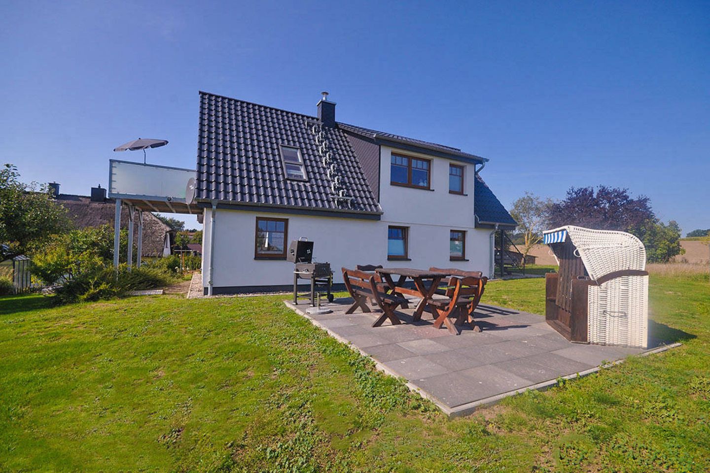 Neuendorf befindet sich am Greifswalder Bodden und ist ein Ortsteil von der Stadt Putbus. Die idyllische und ruhige Lage lädt zum Träumen und Verweilen ein. Fernab von den belebten Tourismus findet man hier seine wohlverdiente Ruhe. Die naturbelassene Badestelle ist nur einige Meter entfernt. Am Ufer führen die Rad- und Wanderwege entlang, sowie die älteste Weidenallee der Insel Rügen! Nicht weit entfernt, in Putbus, befindet sich die Endhaltestelle vom Rasenden Roland. Mit der historischen Dampflok können Sie ganz bequem den Süd-östlichen Teil der Insel Rügen erkunden. Sie gelangen über die Ostseebäder Binz, Sellin und Baabe nach Göhren. Genießen Sie die Fahrt durch die schöne und atemberaubende Landschaft!