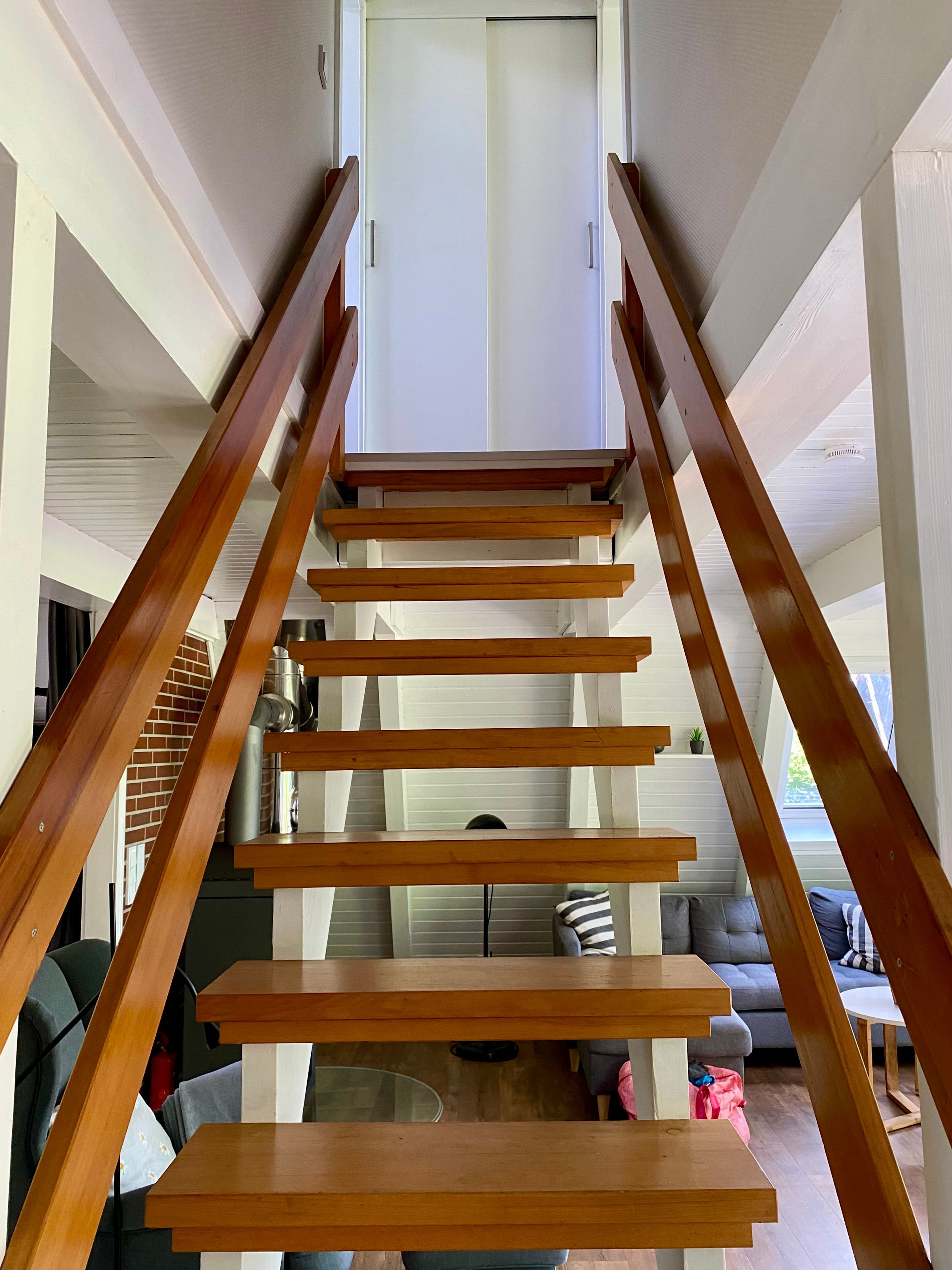 Über eine solide Treppe erreicht ihr das Obergeschoss, hier befinden sich zwei Schlafzimmer