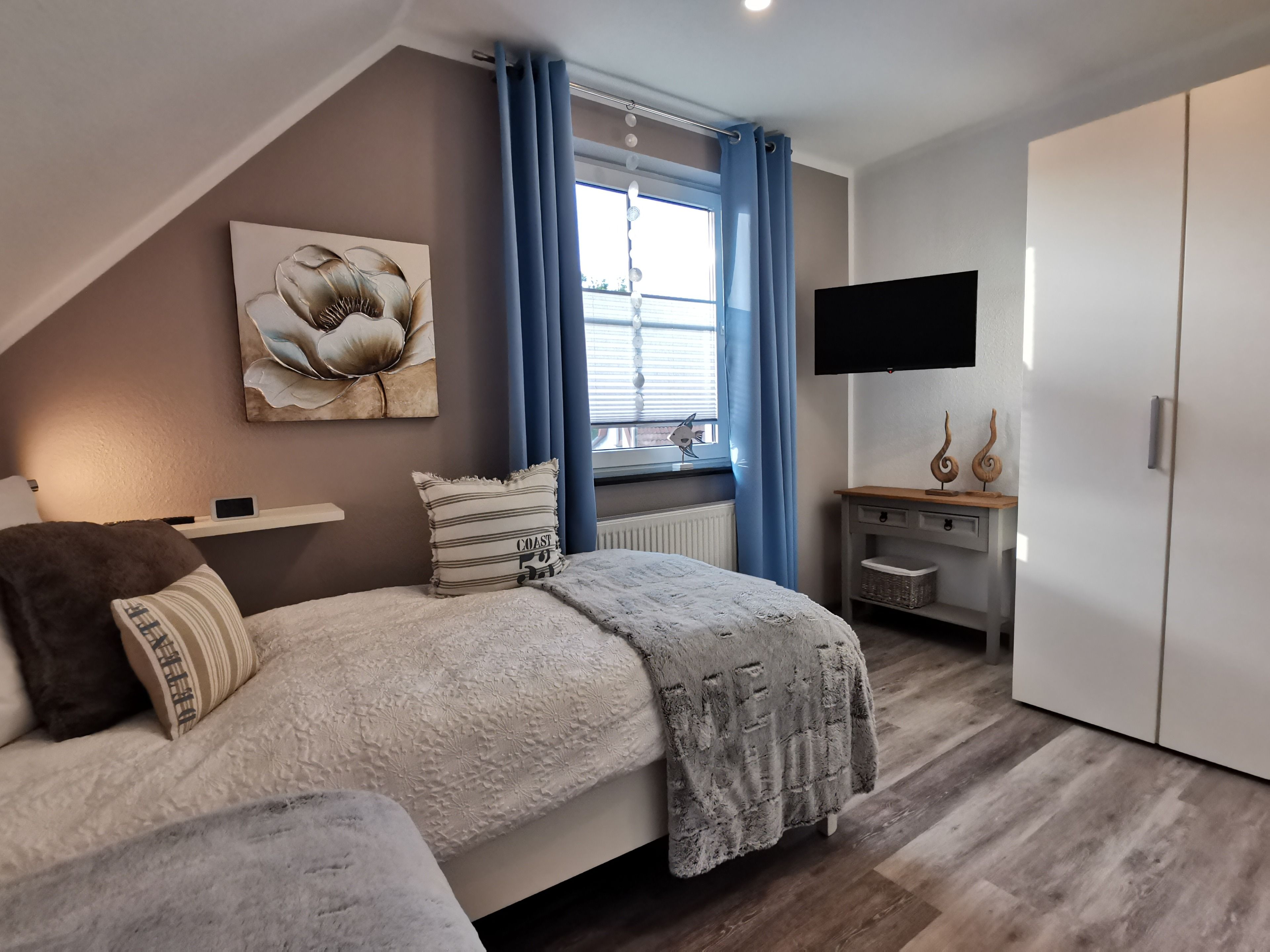 Das zweite Schlafzimmer ist von der Ausstattung her gleich, jedoch mit zwei Einzelbetten eingerichtet.