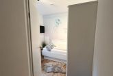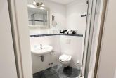 einen Kleiderschrank, Kommode, Stuhl, Garderobe, TV, freies Wlan. Das moderne Duschbad ist innenliegend.