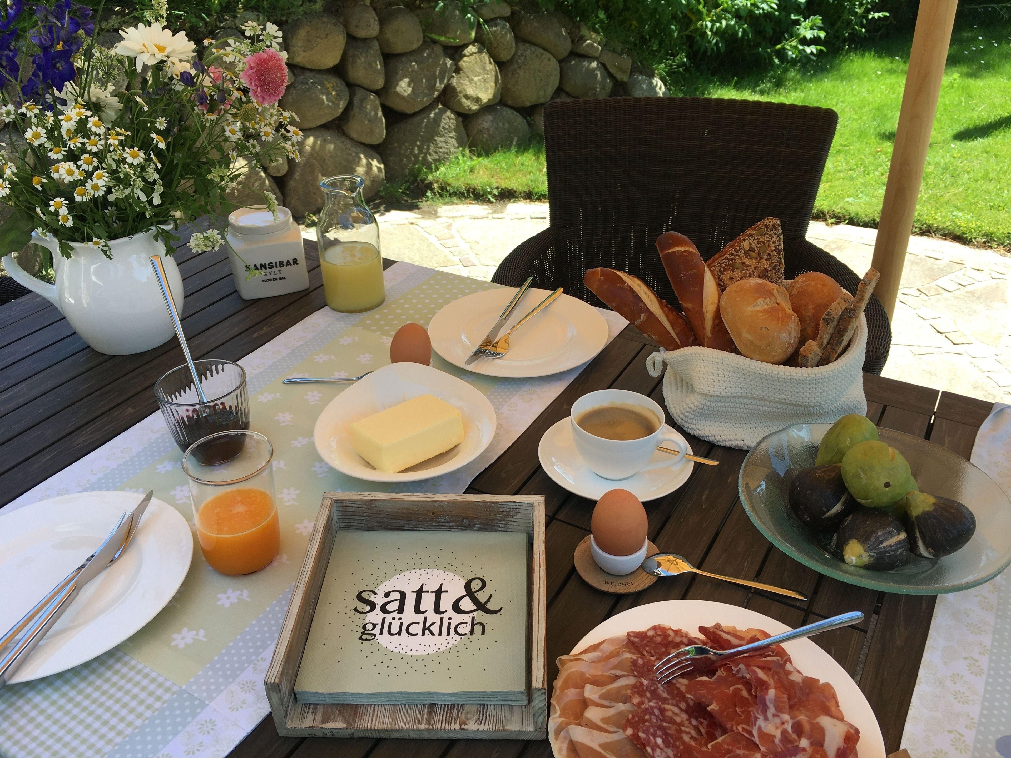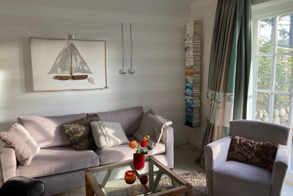 Außergewöhnliche, gemütliche Wohnung mit großzügiger Gartenterrasse auf Kampener Belag. Umgeben von Friesenwällen mit Sylter Rosen und eigenem Carport.