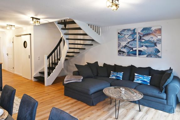 Im hellen Wohnbereich mit Smart-TV erwartet Sie eine offene, voll ausgestattete Küche samt Essbereich. Neben Filter-Kaffeemaschine, Toaster, Wasserkocher, Eierkocher, Handmixer, Backofen und Geschirrspüler, steht Ihnen auch ein großer Kühlschrank mit Tiefkühlfach zur Verfügung. Für die kleinen Gäste gibt es Kinderbett, Hochstuhl, kindgerechtes Besteck und Spielzeug.