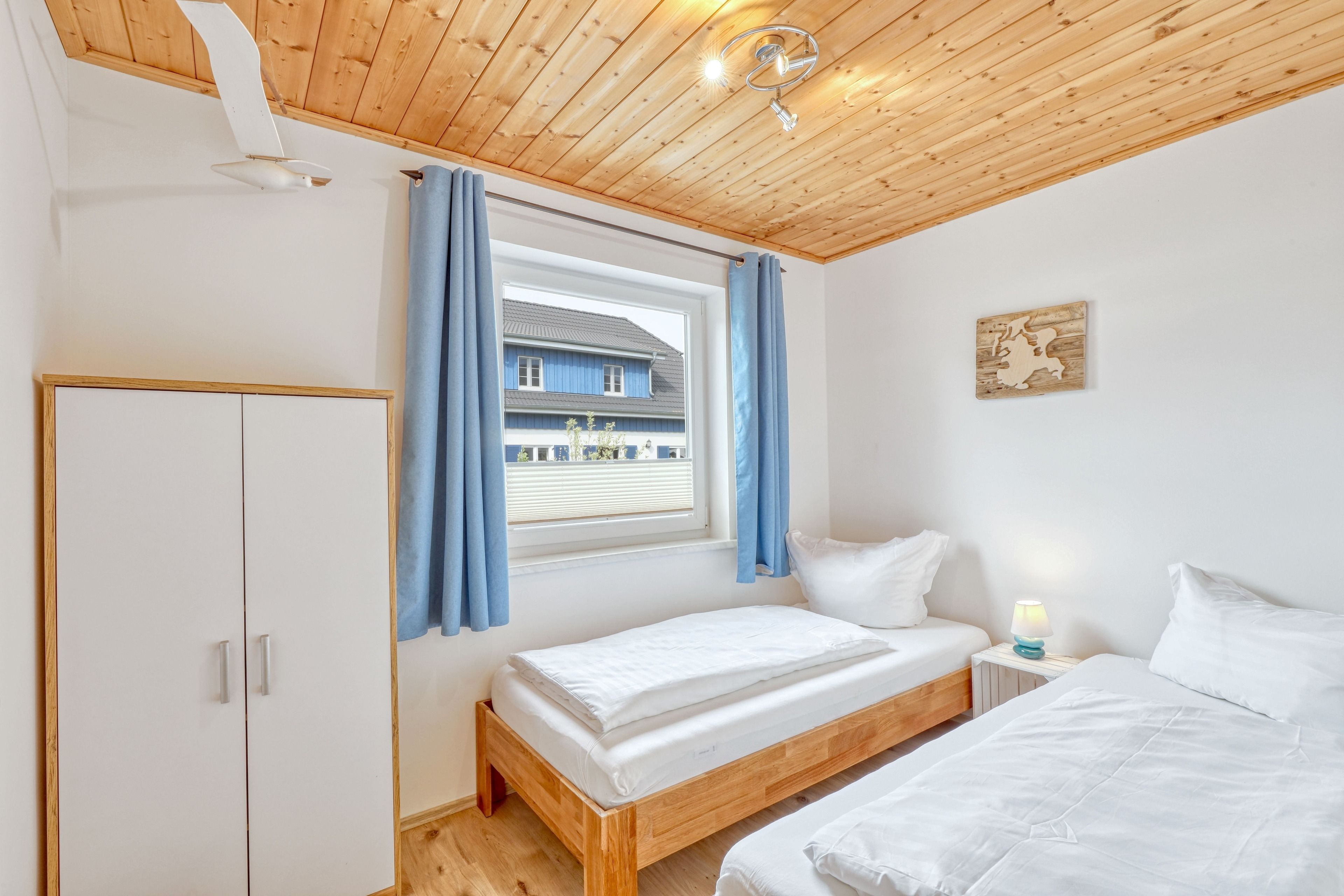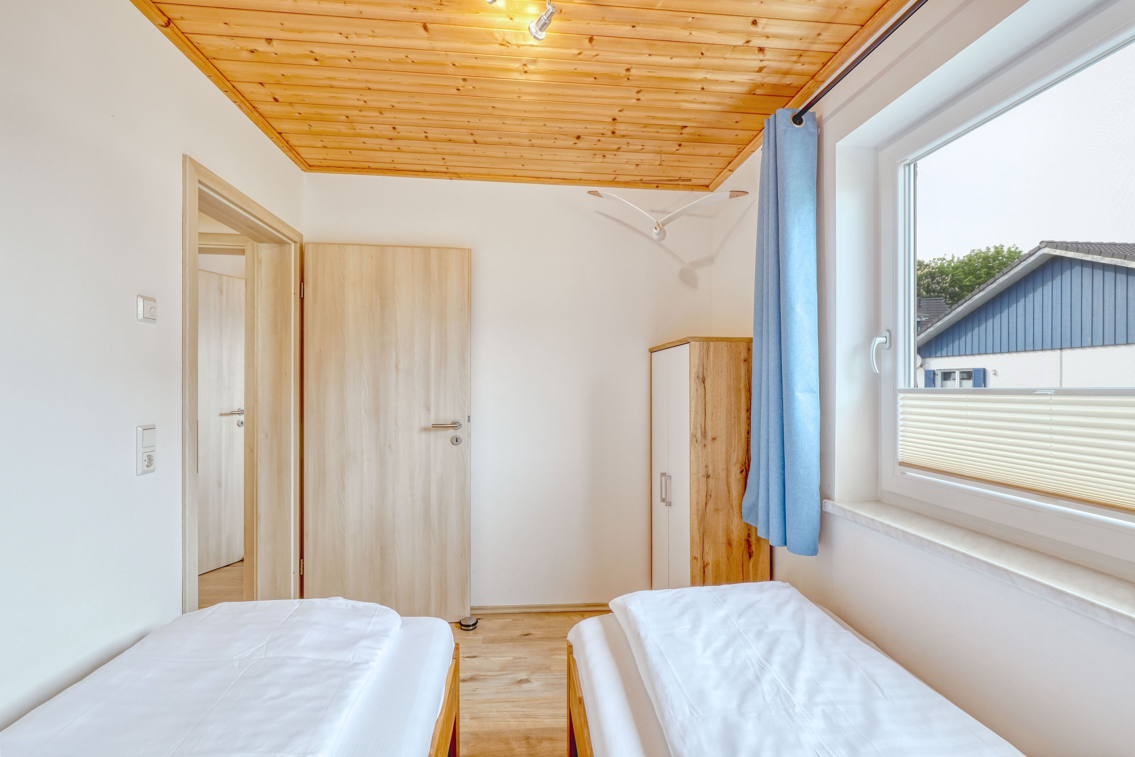 Schlafmöglichkeiten: Zwei separate Schlafzimmer mit jeweils zwei Einzelbetten. Ein zusätzliches Kleinkinderbett (bis 2 Jahre) und ein Hochstuhl können bei Bedarf kostenlos bereitgestellt werden.