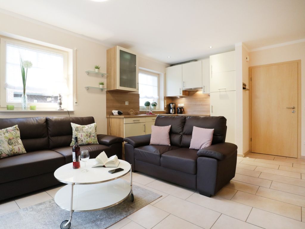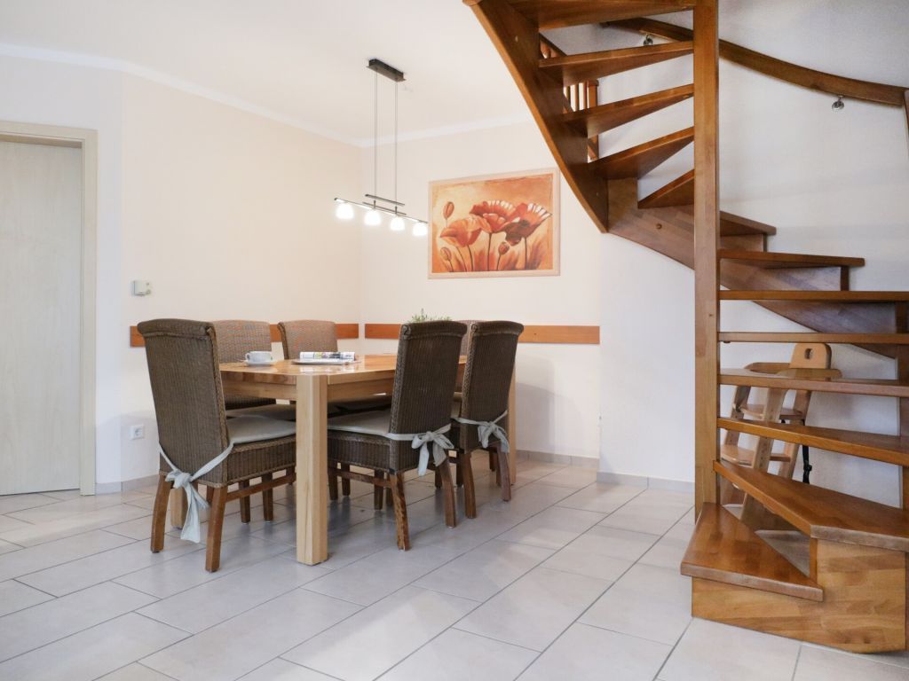 Die Allergikerfreundliche 4-Zimmer-Ferienwohnung - Strandgold - erstreckt sich über zwei Etagen, bietet auf rund 80 qm viel Platz für bis zu sechs Personen. In der Doppelhaushälfte erwartet Sie ein komfortabel eingerichteter Wohn- und Essbereich mit gemütlichem Sofa, Fernseher, Musikanlage und direktem Zugang zur sonnigen Terrasse mit angrenzendem Garten. Selbstverständlich steht Ihnen kostenloses WLAN zur Verfügung. Die offen gestaltete, voll ausgestattete Küche bietet alles, was Sie für die Eigenversorgung benötigen, darunter Cerankochfeld, Backofen, Mikrowelle, Dunstabzug, Kühlschrank mit Gefrierfach, Kaffeemaschine, Senseo-Padmaschine, Wasserkocher, Toaster und Geschirrspüler. Am großen Esstisch oder in der warmen Jahreszeit auf der saisonal möblierten Süd-/Westterrasse können Sie Ihre Mahlzeiten in Ruhe genießen. Im unteren Bereich der Wohnung befindet sich ein separates Schlafzimmer mit zwei Einzelbetten sowie ein modernes Tageslicht Duschbad mit ebenerdiger Dusche, Waschtisch, Fön, WC und Handtuchheizung. Eine Waschmaschine/Wäschetrockner steht im Haus gegen Gebühr bereit. Auch ein Bügeleisen und Bügelbrett sind vorhanden. Für ein angenehmes Raumklima sorgt im Erdgeschoss eine Fußbodenheizung. Über eine Treppe mit oben angebrachtem Treppenschutzgitter gelangen Sie in die obere Etage, wo zwei weitere Schlafzimmer liegen: eines mit Doppelbett und Kleiderschrank sowie ein Kinderzimmer mit Etagenbett und gemütlicher Sitznische. Für Familien stehen zudem ein Kinderreisebett und ein Hochstuhl zur Verfügung.