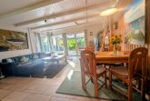 Der große Garten mit teilüberdachter und Gartenmöbeln ausgestatteter Terrasse bietet viel Platz zum Erholen, für entspannte Grillabende oder für Kinder zum ausgelassenen Toben und Spielen.