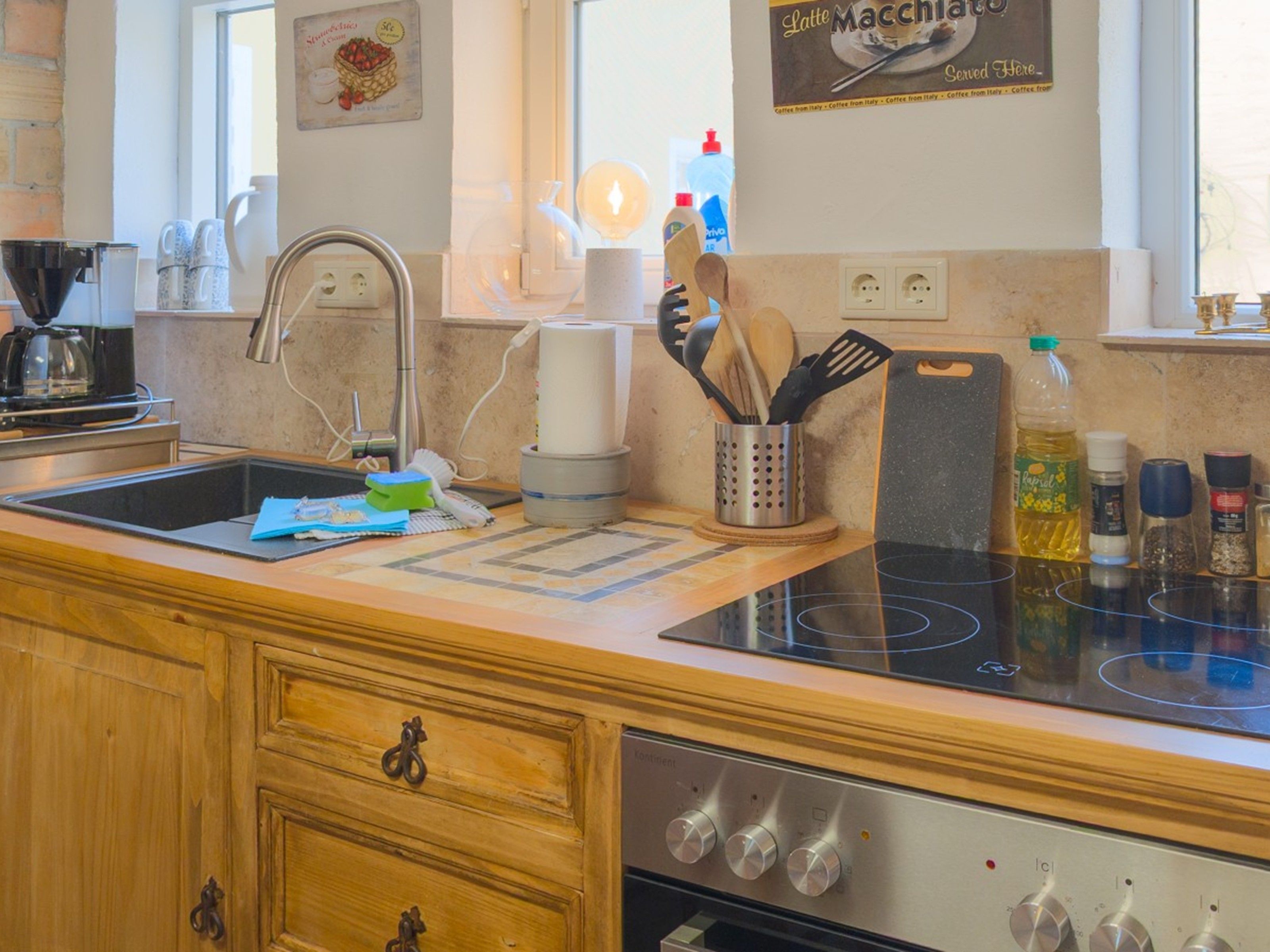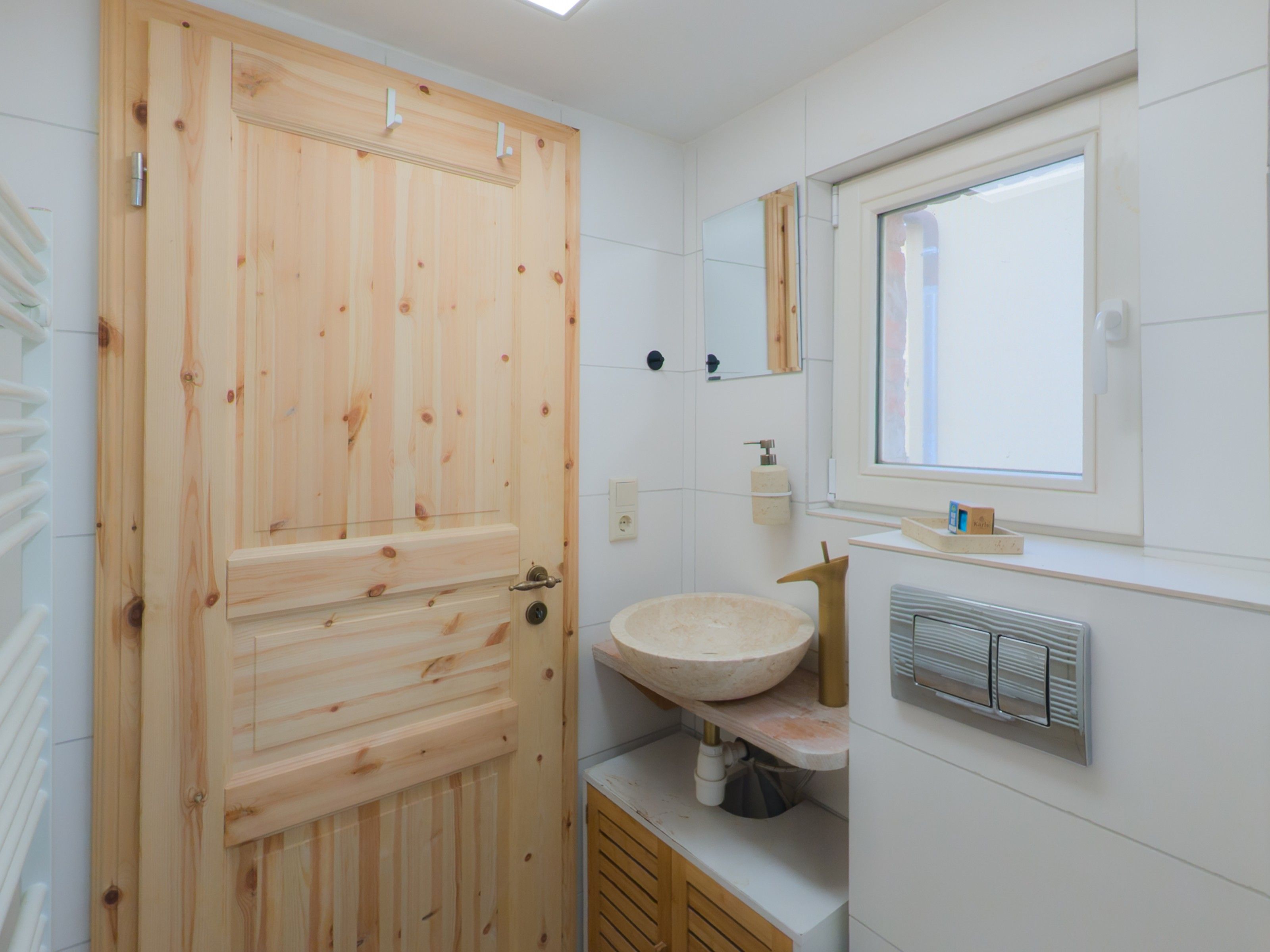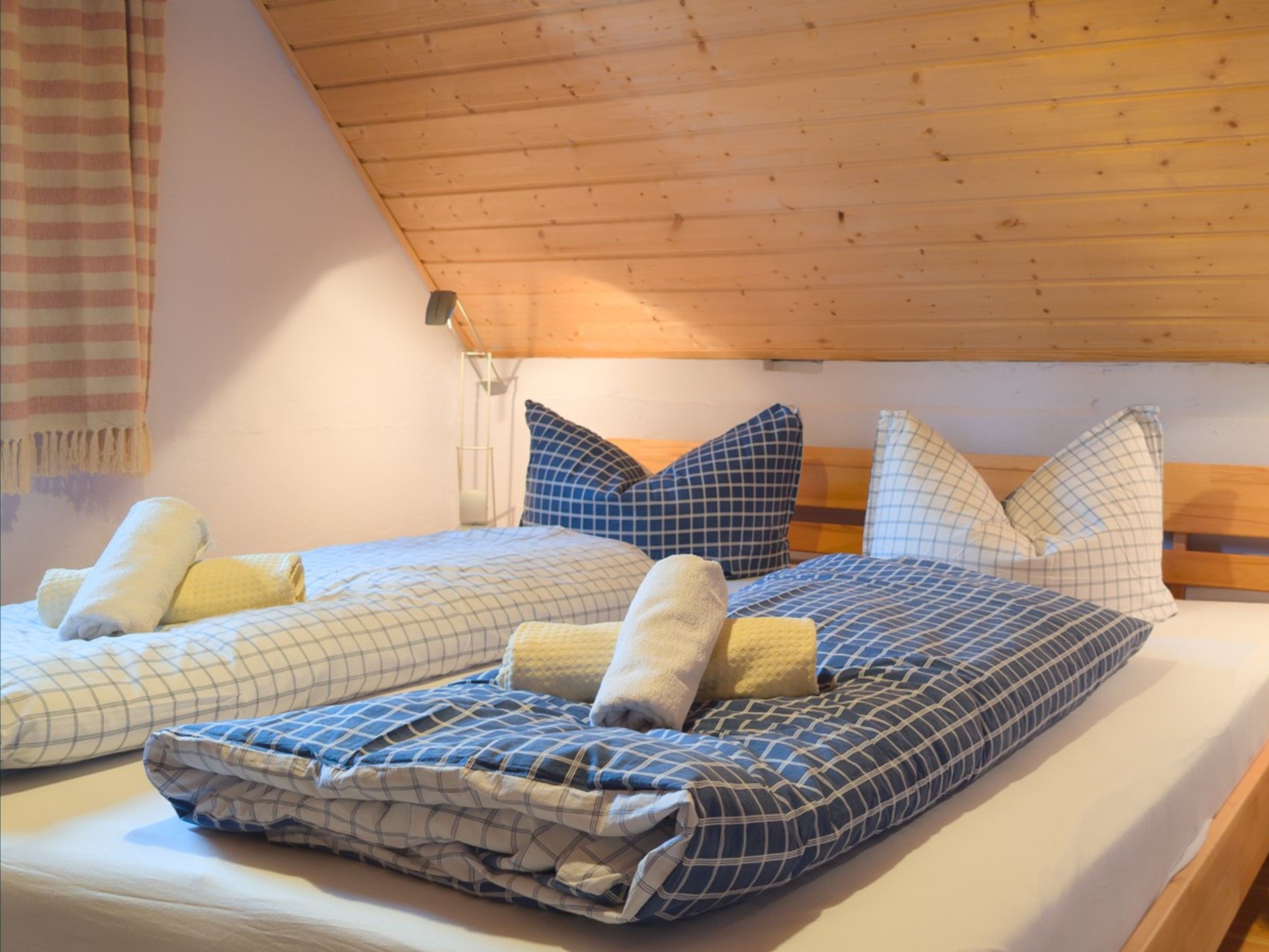 Das zweite Häuschen, „Antons Remise“, liegt hinter „Ellas Gehöft“ und überzeugt durch ebenso viel Charme. Im Erdgeschoss finden Sie eine gut ausgestattete Küche, ein Wohnzimmer mit Kachelofen und ein Badezimmer mit Dusche und WC. Auch hier führt eine steilere Treppe ins Obergeschoss, wo sich zwei Schlafzimmer mit Doppelbetten befinden.