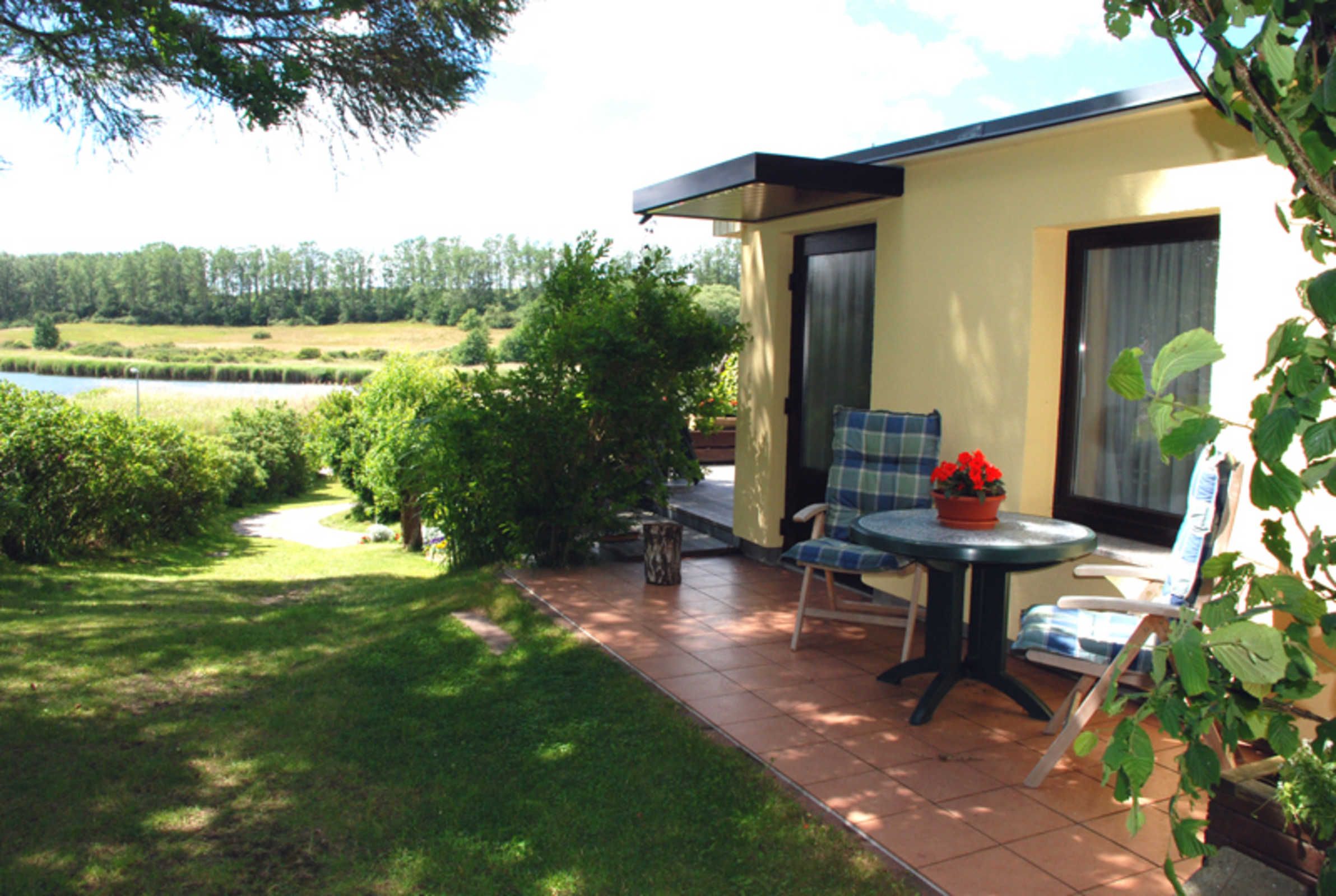 Zu jedem Ferienappartement gehört eine Terrasse mit Gartenmöbeln bzw. eine Sitzgelegenheit im Garten. Es besteht die Möglichkeit zum Grillen nach Absprache mit den Gastgebern (Reetdach!). Am Objekt gibt es auch einen kleinen Bootssteg im Schilf, an dem gern auch kleine Boote oder Jollen anlegen können.