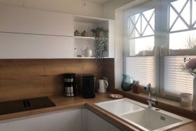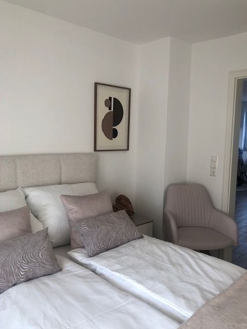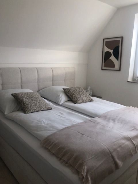 Die ganz neu renovierte Ferienwohnung kleine Auszeit verfügt über 2 Schlafzimmer, ausgestattet mit einem Boxspringbett 140 cm x 200 cm und das 2. Schlafzimmer mit einem Boxspringbett 180 cm x 200 cm . Die Küche inkl. Induktionsherd lässt keine Wünsche offen. Kaffemaschine sowie Kaffeevollautomat vorhanden. Die Ferienwohnung verfügt über 1 Balkon (möbliert, Süd Ausrichtung) und eine Loggia (Loungemöbel, Süd-West Ausrichtung).
