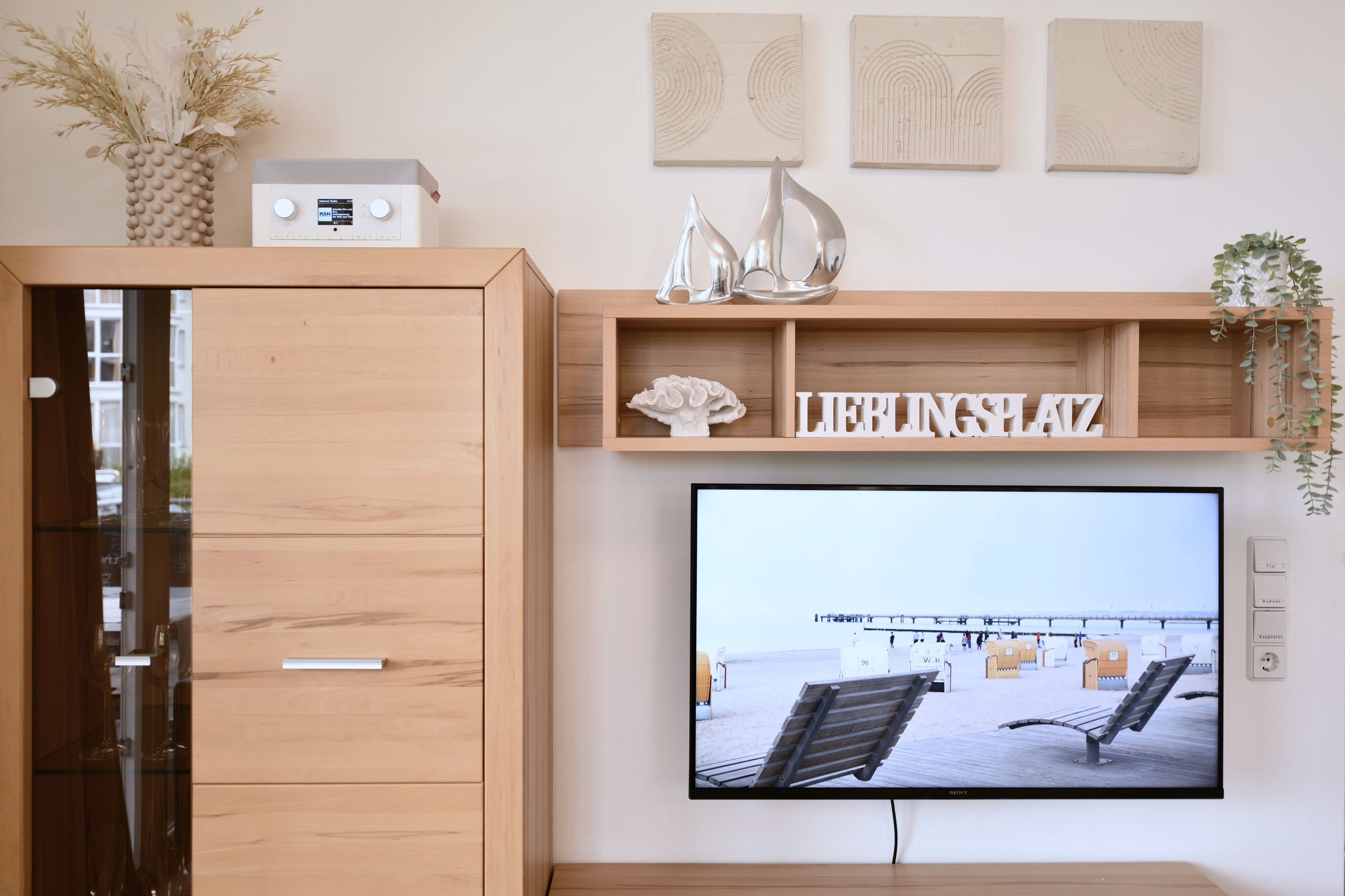 Zur Unterhaltung stehen ebenfalls Bücher und Spiele, aber auch ein 43 Zoll WLAN-Fernseher (Smart-TV) im Wohnbereich und ein Teufel 3sixty Internetradio sowie ein weiterer 26 Zoll Fernseher im Schlafzimmer zur Verfügung.