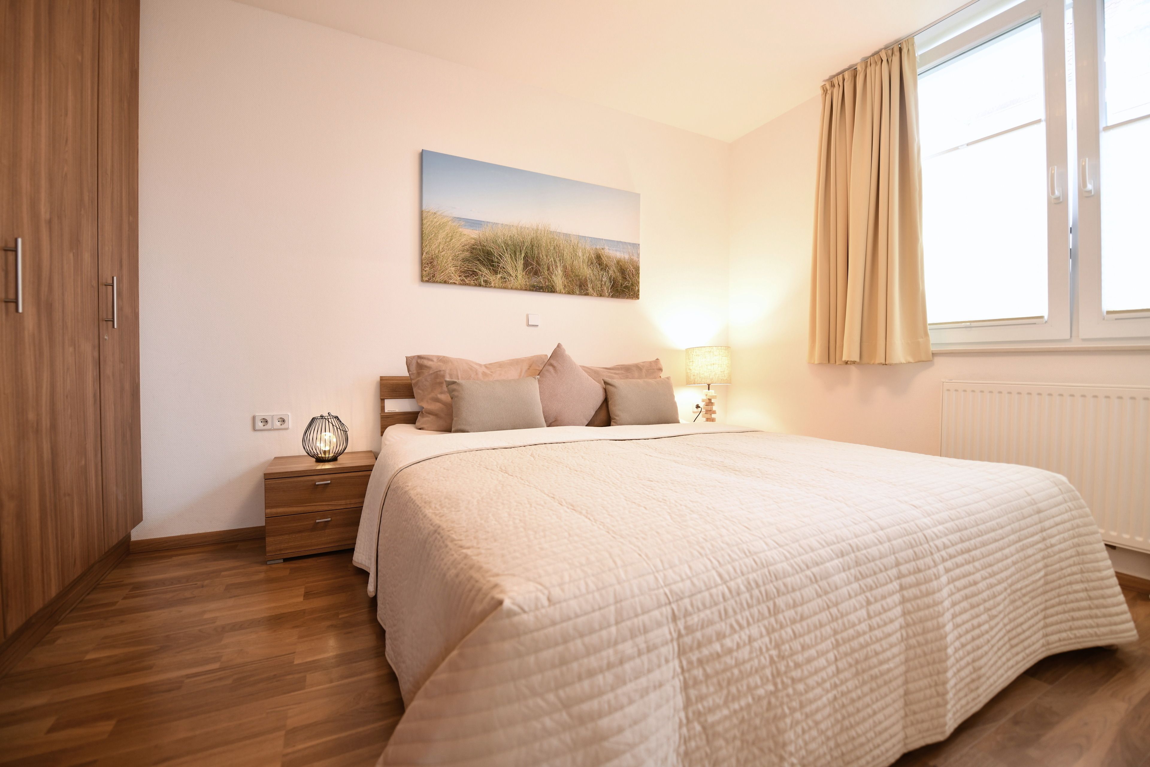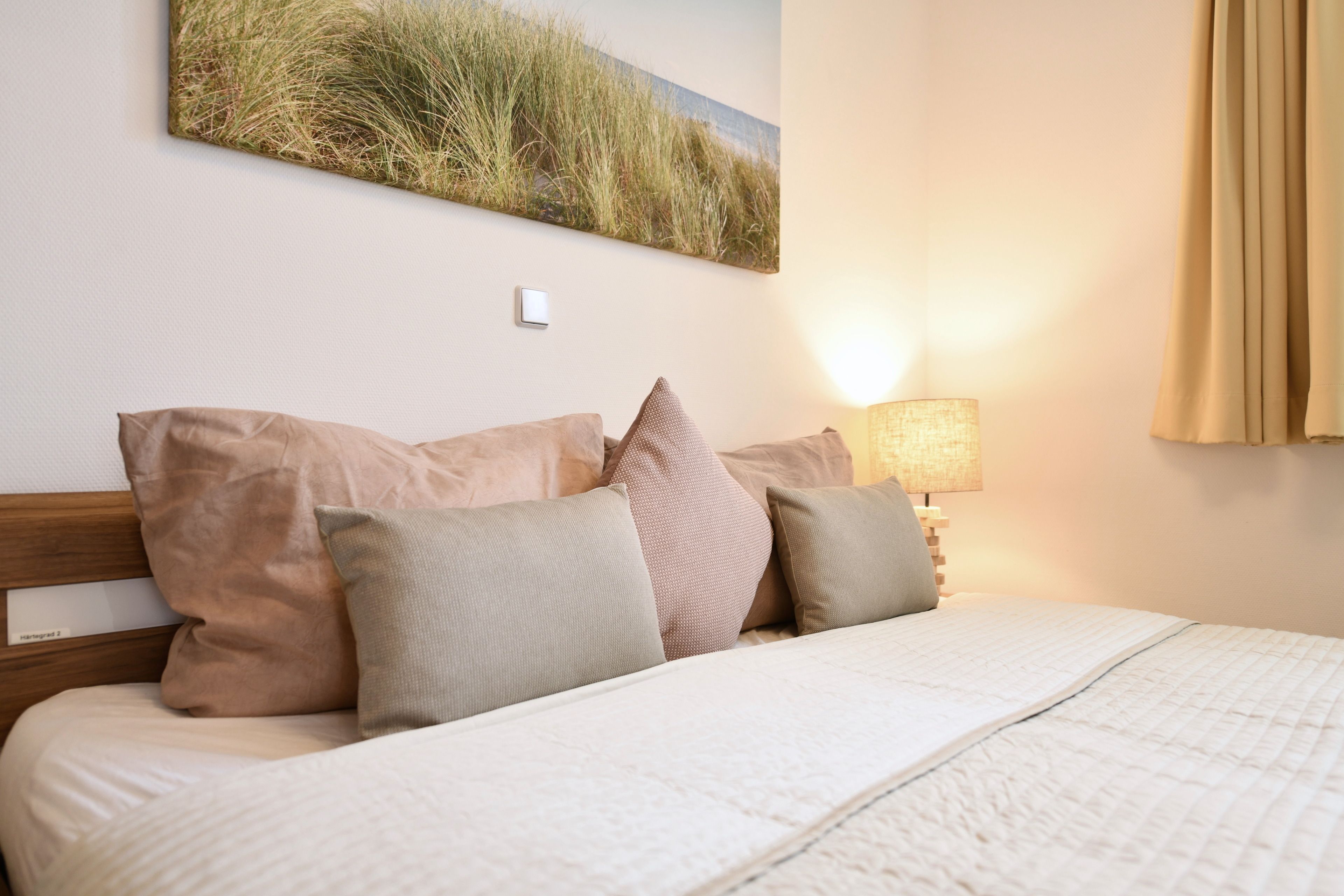 Für einen erholsamen Schlaf sind alle Räume mit Verdunkelungsgardinen ausgestattet.