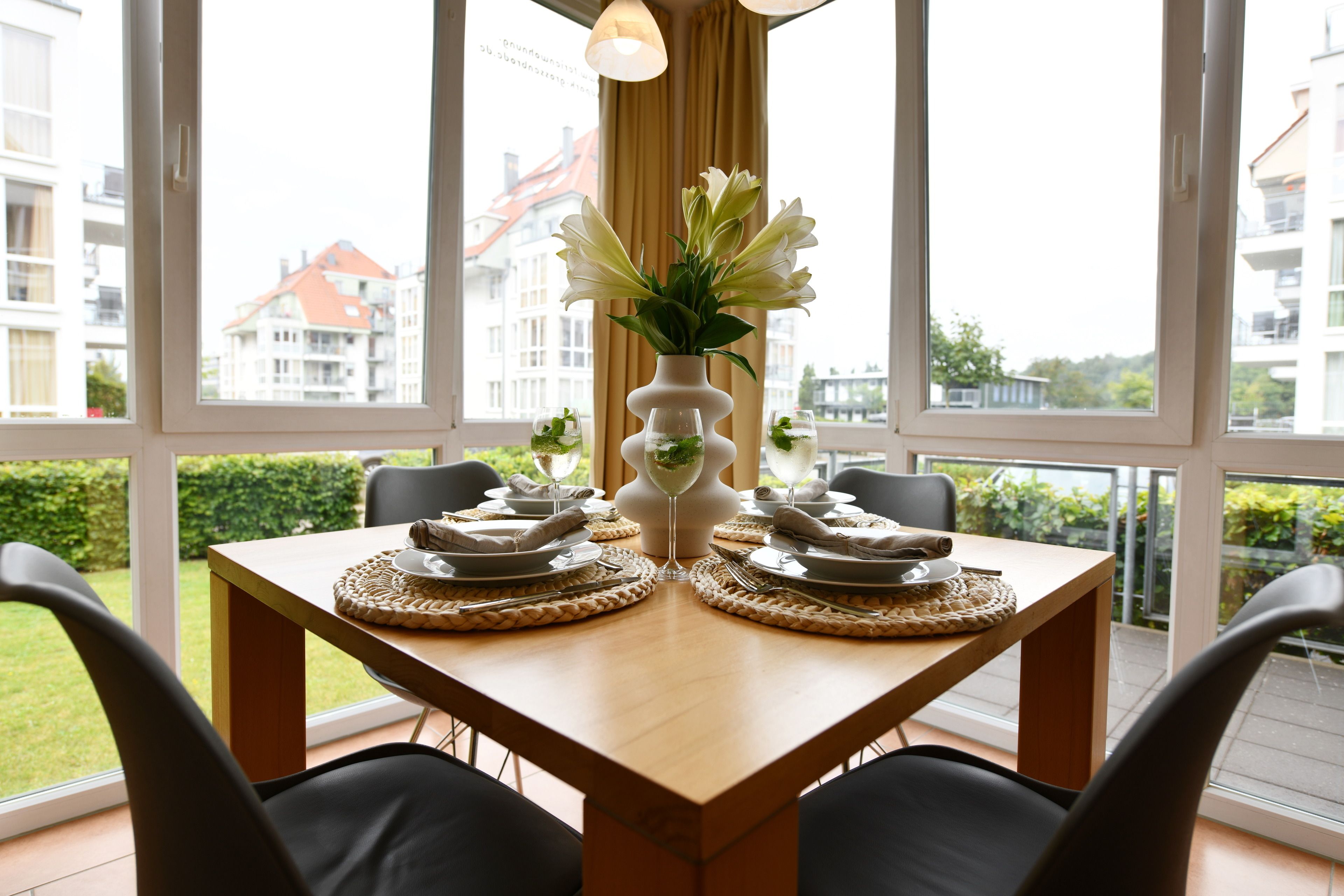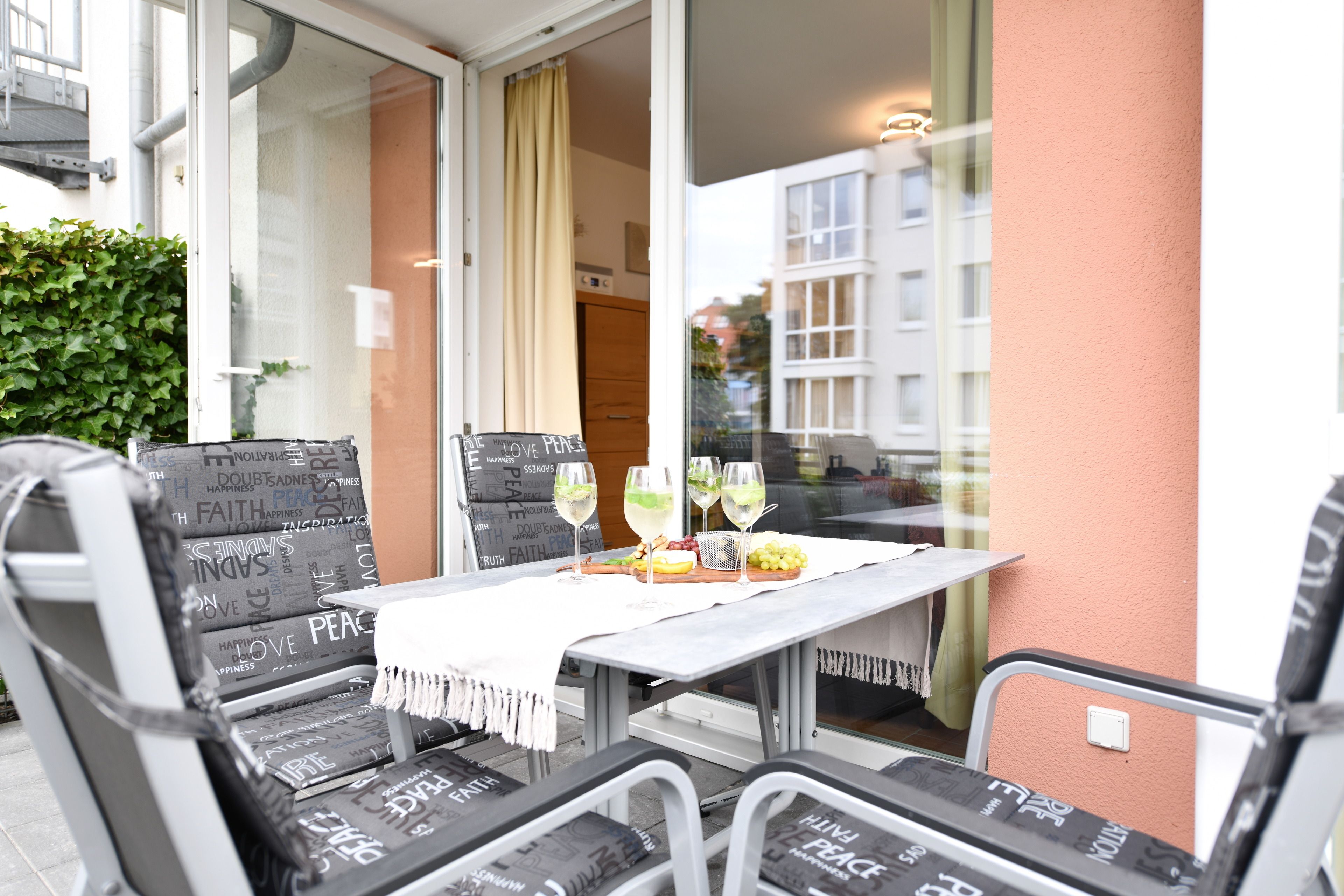 Das Nichtraucher-Appartement verfügt über einen mit Glasfronten versehenen und liebevoll eingerichteten Wohn-/Essbereich mit integrierter voll ausgestatteter Küche. Für angenehme Temperaturen sorgt eine Fußbodenheizung und eine 3fach-Verglasung. Gerne können Sie auch den Kamin im Wohnzimmer nutzen, um an kälteren Tagen eine wohlige Wärme herzustellen.