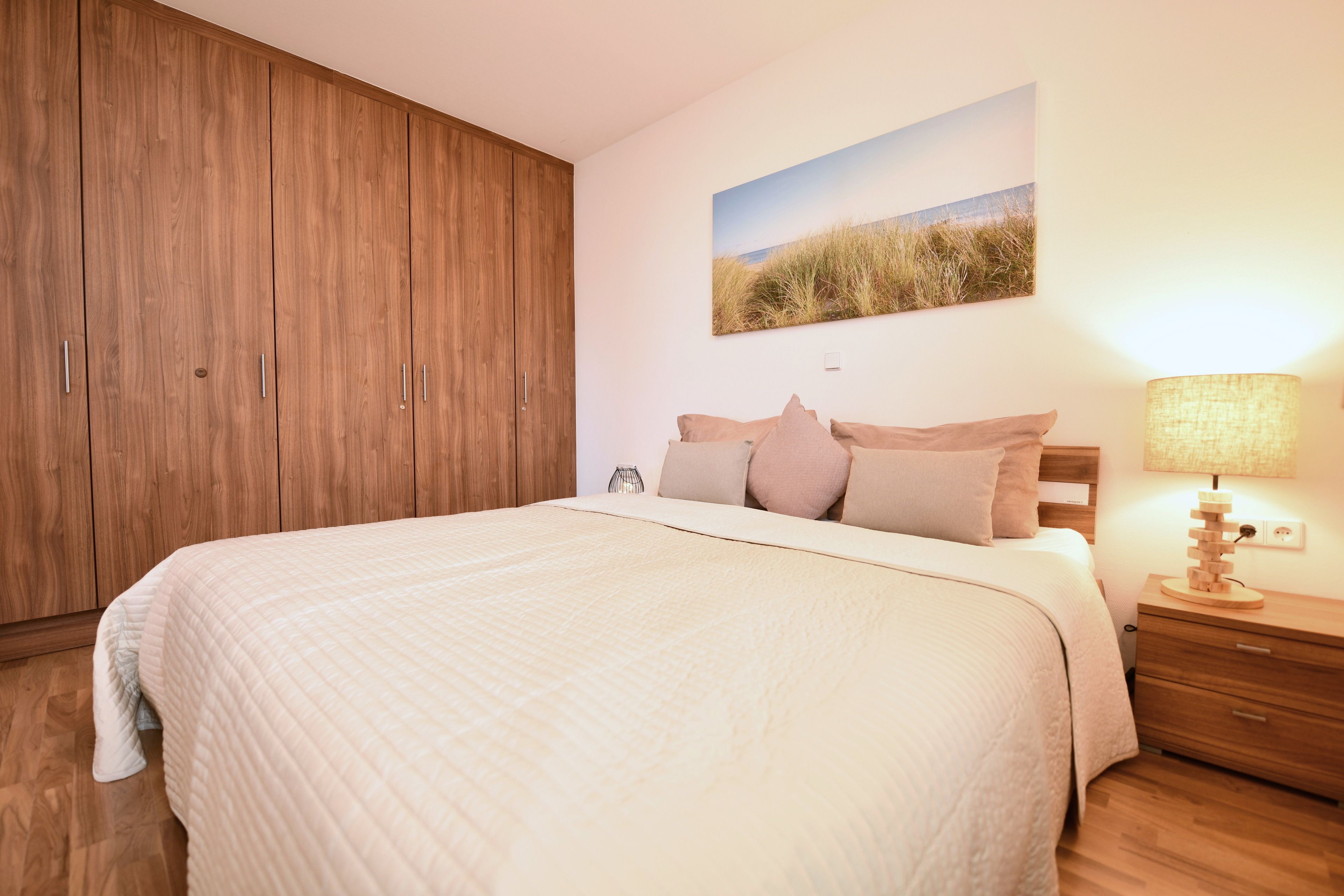 Im Schlafraum bieten Einbauschränke großzügigen Platz für Ihre Garderobe.