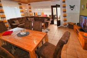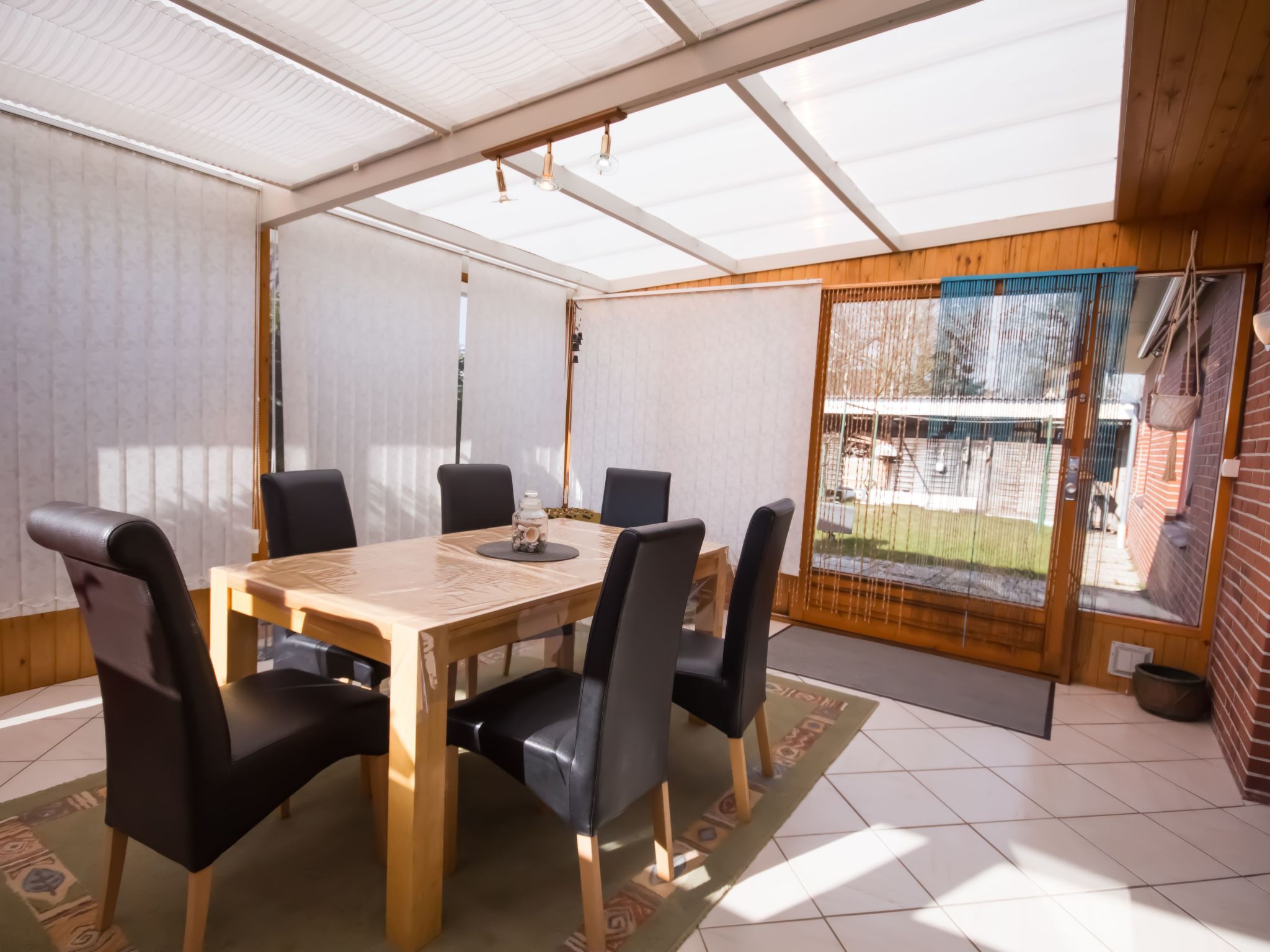 Diese Wohnung liegt zentral im Ort Büsum und Strand sowie Zentrum sind zu Fuß gut und in kurzer Zeit zu erreichen. Die 4-Zimmer-Wohnung verfügt über eine Wohnfläche von ca. 125 m². Die freundlich und gemütlich eingerichtete Ferienunterkunft erstreckt sich über das gesamte Erdgeschoss. Der moderne Wohn- und Essbereich bietet eine Eckcouch mit Hocker und Couchtisch, eine Stehlampe sowie ein Sideboard mit 50-Zoll-Flachbildfernseher. Zudem steht ein Esstisch mit sechs Stühlen bereit. Die voll ausgestattete Küche verfügt neben der oben genannten Ausstattung zusätzlich über einen Backofen und eine Spülmaschine. Auch ein weiterer Essbereich für zwei Personen ist vorhanden. Ein Kinderhochstuhl wird bei Bedarf kostenfrei zur Verfügung gestellt. Das erste Schlafzimmer ist mit zwei Einzelbetten (je 0,90 x 2,00 m) ausgestattet. Ein CD-Radiorekorder, ein 23-Zoll-Fernseher und ein Hocker runden die Ausstattung dieses Schlafbereichs ab. Im zweiten Schlafzimmer erwarten Sie ein Doppelbett (1,80 x 2,00 m) sowie ein optionales Kinderbett (0,70 x 1,40 m) zur kostenfreien Nutzung, dazu ein Radiowecker und ein Hocker. Das dritte Schlafzimmer verfügt ebenfalls über ein Doppelbett (1,80 x 2,00 m) mit beigestelltem Hocker. Im Vergleich zu den anderen Wohnungen bietet dieses Badezimmer zusätzlich eine Fußbodenheizung, einen Handtuchheizkörper sowie Urinal, Bidet und Duschhocker. Das separate Gäste-WC ist mit Waschbecken, Toilette und Spiegel ausgestattet. Im Abstellraum befindet sich eine Waschmaschine zur kostenfreien alleinigen Nutzung, daneben Wäscheständer, Bügelbrett, Bügeleisen und Staubsauger. Eine Garderobe, einen Garderobenschrank und einen Spiegel finden Sie im Flurbereich. Wir haben für Sie Kostenfreies W-Lan für Ausfälle und Störungen übernehmen wir keine Haftung. Der Wintergarten bietet Ihnen einen schönen Blick in den Garten und ist eingerichtet mit einem großen Tisch und sechs Stühlen, einem Sessel, einer Anrichte mit Sat.-TV sowie einer Spielkonsole. Im Außenbereich stehen Ihnen ein kleiner Garten sowie eine Terrasse mit Gartenmöbeln zur alleinigen Nutzung zur Verfügung. Bis zu sechs Personen finden am Tisch unter der elektrischen Markise Platz. Auch ein eigener Grill wird bereitgestellt. Es gibt keine Möglichkeit ein E Auto zu Laden dafür ist der Hausstrom nicht ausgelegt Brandgefahr. Im Haus befinden sich drei Ferienwohnungen mit unterschiedlicher Größe und Ausstattung. Einkaufsmöglichkeiten für Haushalt und Kleidung sind im Umfeld von ca. einem Kilometer und ein Bäcker in ca. 800 Meter zu erreichen. Basisinformationen - Erlaubte Haustiere: keins - Unterkunftstyp: Ferienwohnung - befindet sich in: Wohnsiedlung - Art d. Gebäudes: Mehrparteienhaus - Etage, auf der sich das Objekt befindet: EG - Gesamtanzahl d. Stockwerke im Gebäude über EG: 1 - keine Gruppenbuchung - keine Jugendgruppen - Nichtraucherunterkunft - Schlafzimmeranzahl: 3 - Badezimmeranzahl: 1 - DTV ID: 220340 Top Merkmale - WLAN - Heizung: überall - Fußbodenheizung: teilweise - Terrasse - Garten: zur alleinigen Nutzung - Private PKW-Stellplätze insgesamt für diese Unterkunft: 1 - ㄴ davon Garagenstellplätze: keinen - ㄴ davon Carport-Stellplätze: keinen - ㄴ davon private Außenstellplätze: 1 - Entfernung kostenfreie Gemeinschaftsparkplätze oder Parken an der Straße: 40 m - Entfernung öffentlicher Parkplatz: 40 m Schlafen Schlafzimmer 1 - Doppelbett (1,80m Breite) Schlafzimmer 3 - Doppelbett (1,80m Breite) Schlafzimmer 5 - 2x Einzelbett Badezimmer Badezimmer 1 - Dusche - Waschbecken - Toilette - Bidet - Föhn - Tageslicht Gäste-WC - Waschbecken - Toilette Kochen/Wohnen - Kaffeemaschine: Filter-Kaffeemaschine, Pads-Kaffeemaschine - Kühl-/Gefrierschrank: Gefrierfach, Kühlschrank - Herd: Glaskeramikkochfeld - Dunstabzugshaube - Backofen - Toaster - Mikrowelle - Wasserkocher - Spülmaschine - Geschirrtücher - Anzahl Esstische: 1 - Gesamtzahl Sitzplätze: keine - Anzahl Wohnzimmer: 1 Entertainment - Fernseher: Sat.-TV - DVD-Player - Musikanlage - Radio - CD-Player - Gesellschaftsspiele für Erwachsene Für Kinder - Kinderstuhl - Kinderspielzeug - Gesellschaftsspiele für Kinder Hauswirtschaft - Waschmaschine: zur alleinigen Nutzung im Objekt - Wäschetrockner: zur gemeinschaftlichen Nutzung im Gebäude - Wäscheständer - Bügeleisen - Staubsauger - Rauchmelder - Erste Hilfe Set Barrierefreiheit - ebenerdige Dusche Nachhaltigkeit - Abfallrecycling - Bioabfall verfügbar - Glasrecycling verfügbar - Papierrecycling verfügbar - Kunststoffrecycling verfügbar - Hausisolierung - Isoliertes Dach - Isolierte Fassade Außenbereich - Wintergarten - Grill: Grill - Fahrradabstellplatz überdacht und abschließbar Umgebung - nächstgelegene Ortsmitte: 800 m - Lebensmittelhandel: 900 m - Bars/Clubs/Ausgehen: 900 m - Cafés/Restaurants: 900 m - Bahnhof: 800 m - Flughafen: 5,0 km - Autobahn: 20,0 km - Hafen: 1,0 km - nächste Haltestelle ÖPNV: 800 m - Strand: 1,0 km - Kiesstrand: 1,0 km - Grasstrand: 1,0 km - Sandstrand: 1,0 km - Wasser (Meer, See etc.): 1,0 km - Meer: 1,0 km - See: 1,0 km - Wassersport: 1,0 km - Angelplatz: 900 m - Spielplatz: 300 m - Öffentliches Schwimmbad: 900 m - Golfplatz: 3,0 km - Fahrrad-Verleih: 900 m - Reitmöglichkeit: 900 m