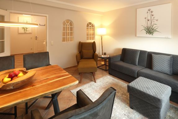 Wir heißen Sie herzlichst willkommen in unserer geräumigen 2-Zimmer-Ferienwohnung Strand-Lodge in der neu eröffneten Strandvilla Schützenstraße 4 in Westerland. Unsere Strand-Lodge ist mit 89 qm die mittlere der drei Ferienwohnungen im Erdgeschoss. Sie erstreckt sich über 2 Ebenen (Erdgeschoß und Souterrain).Eintreffen und wohlfühlen - lautet hier die Maxime!Die schöne Erdgeschosswohnung ist ideal für 2-3 Personen. Sie betreten sie durch die Küche. Diese ist ausgestattet mit einer Esstischgruppe, einem 2er Cerankochfeld und einem Geschirrspüler. Von hier aus schließt sich das Wohnzimmer mit einer bequemen Schlafcouch, einer Stereoanlage, einem DVD Player und dem Flat TV an. Hier haben Sie auch Zugang zur sonnigen Südterrasse mit Strandkorb und Gartenmöbeln. Eine breite Treppe führt ins Souterrain. Hier befindet sich sowohl das große Schlafzimmer mit Boxspringbett und Flat TV als auch das Duschbad und ein separates Gäste WC.Im Schlafzimmer lädt ein behagliches Bett zum Träumen ein. Das Wohnzimmer bietet mit einer Schlafcouch eine weitere Möglichkeit. Im geräumige Badezimmer finden Sie eine Dusche. Eine zusätzliches Gäste-WC ist ebenfalls vorhanden.Im Souterrain des Hauses befinden sich Waschmaschine und Trockner, ein Bügelbrett und Bügeleisen sowie eine Sauna (gegen Gebühr), die gemeinschaftlich genutzt werden können. Selbstverständlich gibt es im gesamten Haus Free Wifi.Ob in weichen Polstern , am großen Esstisch oder auf der Terrasse: Es bieten sich viele Möglichkeiten gemeinsam zu entspannen und zu genießen.Kommen Sie mit großen Erwartungen, diese werden hier erfüllt! Unser Apartment Strand-Lodge verfügt über ein Schlafzimmer mit Doppelbett 180x200, einem großzügigen Wohnzimmer, einem großen Essbereich, mit Küche, ein Duschbad und ein Gäste-WC, Sauna, Hauswirtschaftsraum mit Waschmaschine und Trockner, Gaderobenschrank, Garten und Terrasse. Basisinformationen - Erlaubte Haustiere: 1 - Unterkunftstyp: Ferienwohnung - befindet sich in: nichts zutreffend - Art d. Wohnung: Maisonette - Art d. Gebäudes: Mehrparteienhaus - Etage, auf der sich das Objekt befindet: EG - Gesamtanzahl d. Stockwerke im Gebäude über EG: 2 - keine Gruppenbuchung - keine Jugendgruppen - Nichtraucherunterkunft - Schlafzimmeranzahl: 1 - Badezimmeranzahl: 1 Top Merkmale - WLAN - Klimaanlage: keine - Heizung: überall - Fußbodenheizung: keine - Terrasse - Garten: zur gemeinschaftlichen Nutzung - Private PKW-Stellplätze insgesamt für diese Unterkunft: keinen Schlafen im Wohnbereich - Schlafsofa 1 Person Schlafzimmer 1 - Doppelbett (1,80m Breite) Badezimmer Badezimmer 1 - Dusche - Toilette Gäste-WC - Toilette Wellness - Sauna Kochen/Wohnen - Kaffeemaschine: Pads-Kaffeemaschine - Kühl-/Gefrierschrank: Kühlschrank - Herd: Glaskeramikkochfeld - Toaster - Mikrowelle - Wasserkocher - Spülmaschine - Anzahl Esstische: 1 - Gesamtzahl Sitzplätze: 3 - Anzahl Wohnzimmer: 1 Entertainment - Fernseher: Kabel-TV Hauswirtschaft - Waschmaschine: zur gemeinschaftlichen Nutzung im Gebäude - Wäschetrockner: zur gemeinschaftlichen Nutzung im Gebäude - Staubsauger Außenbereich - Grillen nicht zulässig Umgebung - nächstgelegene Ortsmitte: 400 m - Cafés/Restaurants: 200 m - Bahnhof: 400 m - Strand: 190 m - Sandstrand: 190 m - Wasser (Meer, See etc.): 200 m - Meer: 200 m - Öffentliches Schwimmbad: 500 m - Golfplatz: 4,6 km