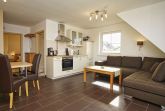 WOHNEN // Wohnraum mit Essbereich, Sitzgarnitur mit bequemer Couch, Flachbild-TV, Sat-TV, Radio mit CD-Player ++