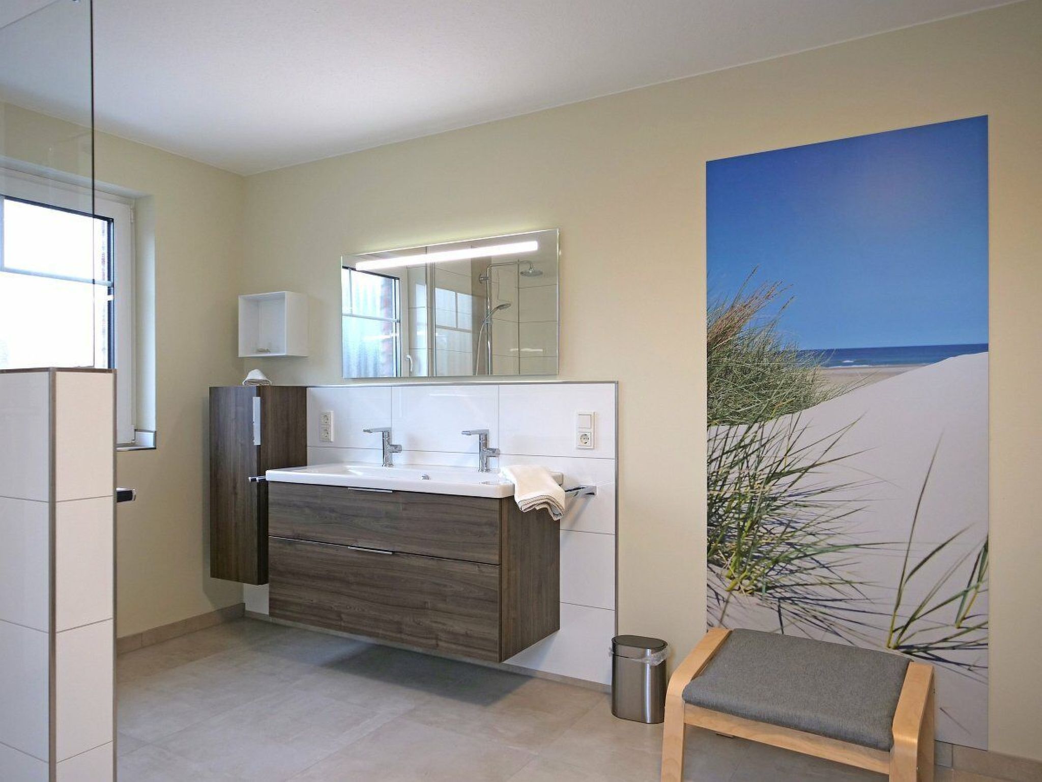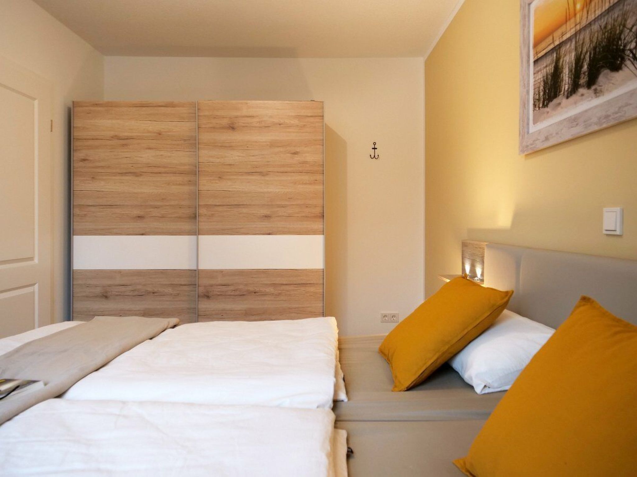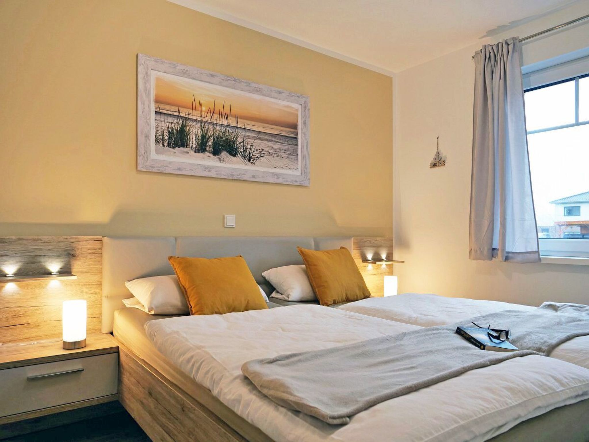 Das großzügige Doppelhaus befindet sich inmitten eines gemischten Wohngebietes, welches zentrumsnah und strandnah gelegen ist. Alle wichtigen Einkaufs- und Freizeitmöglichkeiten sind fußläufig erreichbar. Für weitere Exkursionen stehen Fahrräder zur Verfügung oder es können öffentliche Verkehrsmittel in Anspruch genommen werden. Ferienhaus Nordwind luxuriös ausgestattete DH Hälfte mit Sauna, Whirlpool, 2 Bäder, Kamin, Terrasse und 2 Fahrräder, 600 m zum Strand,Strandkorb Der eigene kleine Garten ist mit einer Hecke abgegrenzt und bietet neben Terrassenmöbeln mit Auflagen und Sonnenschirm, zwei Gartenliegen sowie einen Holzkohlegrill. Im angrenzenden Abstellraum befindet sich eine Waschmaschine, einige Spielsachen sowie 2 Fahrräder (2x 28). Die PKW Stellplätze befinden sich auf dem Grundstück vor dem Haus. Alle Bereiche sind gut ausgeleuchtet. Das Haus Nordwind wurde im Landhausstil hochwertig eingerichtet und verfügt über eine exklusive Ausstattung mit großem Wellnessbad mit Sauna und Whirlpool (ca. 17 m²), Terrasse, Balkon im OG, Kaminofen, Fußbodenheizung und Insektenschutz. Die 4 gemütlichen Schlafzimmer, zwei davon im Erdgeschoss, verfügen alle über ein Flachbild TV und viel Stauraum. 2 Babybetten für unsere kleinen Gäste sind ebenfalls vorhanden. Eine hochwertige, im Landhausstil eingerichtete Küche mit umfangreicher Ausstattung, offen zum Essbereich, lädt zum Kochen, Genießen und Verweilen ein. Ein Hochstuhl, Kindergeschirr, Pürierstab vervollständigen die Ausstattung der kleinen Gäste. Im Wohnbereich spendet ein Kaminofen wohlige Wärme, welche Sie vom gemütlichen Sofa aus genießen können, von hier aus geht es auch zur großen Terrasse. Im Spielezimmer im OG befindet sich neben einigen Spielen und einer Dartscheibe auch noch ein weiterer kleiner Kühlschrank und ein Schlafsofa. Ebenfalls im OG finden Sie ein tageslichthelles Wellnessbad mit Sauna, Whirlpool, Rainshower Dusche, WC und Doppelwaschtisch sowie hochwertige Badezimmermöbel. Ein zweites Bad mit Tageslicht und ebenfalls Rainshower Dusche befindet sich im EG. Alle Zimmer sind mit elektrischen Rolläden ausgestattet und verfügen über eine Fußbodenheizung. Wohn-, Bad und Schlafzimmerfenster verfügen über Insektenschutzgitter. Der Treppenbereich ist durch ein Treppengitter geschützt Burhave liegt auf der grünen Habinsel Butajdingen am Jadebusen. Viele Wiesen und in erster Linie der Küstenbereich prägen die Umgebung. Burhave verfügt über einen eigenen Strandabschnitt am Grünstrand auf welchem sich auch die Strandkörbe befinden. Ein kleines Restaurant und ein großer Spielplatz befinden sich dort ebenso wie die Campingplätze. Ein paar Hundert Meter weiter liegt die Nordseelagune, ein tideunabhängiges Meerwasserfreibad. Außerdem finden Sie in unmittelbarer Nähe des Ferienhauses die Spielscheune - ein Indoor Spielplatz mit Bowlingbahn und kleiner Gastronomie - einen Adventure Minigolfplatz, einen Fahrradverleih und kleinere Souvenirläden sowie Gastronomie. In der Sommersaison wird zudem Kinderanimation angeboten. Nicht weit entfernt liegen weitere malereische Küstenorte, z.B. Fedderwardersiel, von wo aus kleinere Schiffsrundfahrten angeboten werden. Andere interessante Sehenswürdigkeiten sind z.B. der Langwarder Groden, ein Hochseilgarten oder auch der Hof Iggewarden. Von Nordenham aus geht eine Autofähre nach Bremerhaven, die ca. alle 20 Min ablegt. Auch Wilhelmshaven ist nahe gelegen und einen Besuch wert. Hinweis zur Kurtaxe: Die Beiträge variieren nach Saison und Alter, den aktuellen Beitragssatz entnehmen Sie bitte der offiziellen Seite der Gemeinde Butjadingen. In der Sommersaison (Mai bis Oktober) steht ein Strandkorb am Burhaver Grünstrand zur Verfügung. Basisinformationen - Erlaubte Haustiere: keins - befindet sich in: Wohnsiedlung - Art d. Gebäudes: Doppelhaushälfte - Gesamtanzahl d. Stockwerke im Gebäude über EG: 1 - Grundstücksfläche: 720 m² - Baujahr: 2020 - Nichtraucherunterkunft - Schlafzimmeranzahl: 4 - Badezimmeranzahl: 2 Top Merkmale - WLAN - Heizung: überall - Fußbodenheizung: überall - Balkon - Terrasse - Garten: zur alleinigen Nutzung - komplett eingefriedet (mit Mauer, Zaun oder Hecke) - Private PKW-Stellplätze insgesamt für diese Unterkunft: 3 - ㄴ davon Garagenstellplätze: keinen - ㄴ davon Carport-Stellplätze: keinen - ㄴ davon private Außenstellplätze: 3 Schlafen im Wohnbereich - Schlafsofa 1 Person Schlafzimmer 1 - Doppelbett (1,80m Breite) - Kinder-/Babybett - Schlafzimmer abdunkelbar Schlafzimmer 3 - Doppelbett (1,80m Breite) - Kinder-/Babybett - Schlafzimmer abdunkelbar Schlafzimmer 5 - Doppelbett (1,80m Breite) - Schlafzimmer abdunkelbar Schlafzimmer 7 - 2x Einzelbett - Schlafzimmer abdunkelbar Badezimmer Badezimmer 1 - Dusche - Waschbecken - Toilette - Föhn - Tageslicht Badezimmer 3 - Dusche - Badewanne - Waschbecken - Toilette - Föhn - Tageslicht Kochen/Wohnen - Kaffeemaschine: Filter-Kaffeemaschine, Pads-Kaffeemaschine - Kühl-/Gefrierschrank: Gefrierfach, Kühlschrank - Herd: Glaskeramikkochfeld - Dunstabzugshaube - Backofen - Toaster - Mikrowelle - Wasserkocher - Spülmaschine - Geschirrtücher - Größe der Küche: 15 m² - Anzahl Esstische: 1 - Gesamtzahl Sitzplätze: 8 - Anzahl Wohnzimmer: 1 - Wohnzimmer abdunkelbar - Kamin Entertainment - Fernseher: Sat.-TV - DVD-Player - Musikanlage - Gesellschaftsspiele für Erwachsene Für Kinder - Kinderstuhl - Kinderspielzeug - Gesellschaftsspiele für Kinder Hauswirtschaft - Waschmaschine: zur alleinigen Nutzung im Objekt - Staubsauger - Rauchmelder Nachhaltigkeit - Bioabfall verfügbar - Fahrrad kostenlos - Hausisolierung Außenbereich - Outdoormöbel - Grill: Grill Umgebung - nächstgelegene Ortsmitte: 500 m - Lebensmittelhandel: 800 m - Bars/Clubs/Ausgehen: 500 m - Cafés/Restaurants: 300 m - Bahnhof: 17,0 km - Flughafen: 63,0 km - Autobahn: 25,0 km - Hafen: 20 m - nächste Haltestelle ÖPNV: 600 m - Strand: 600 m - Wasser (Meer, See etc.): 600 m - Spielplatz: 100 m 