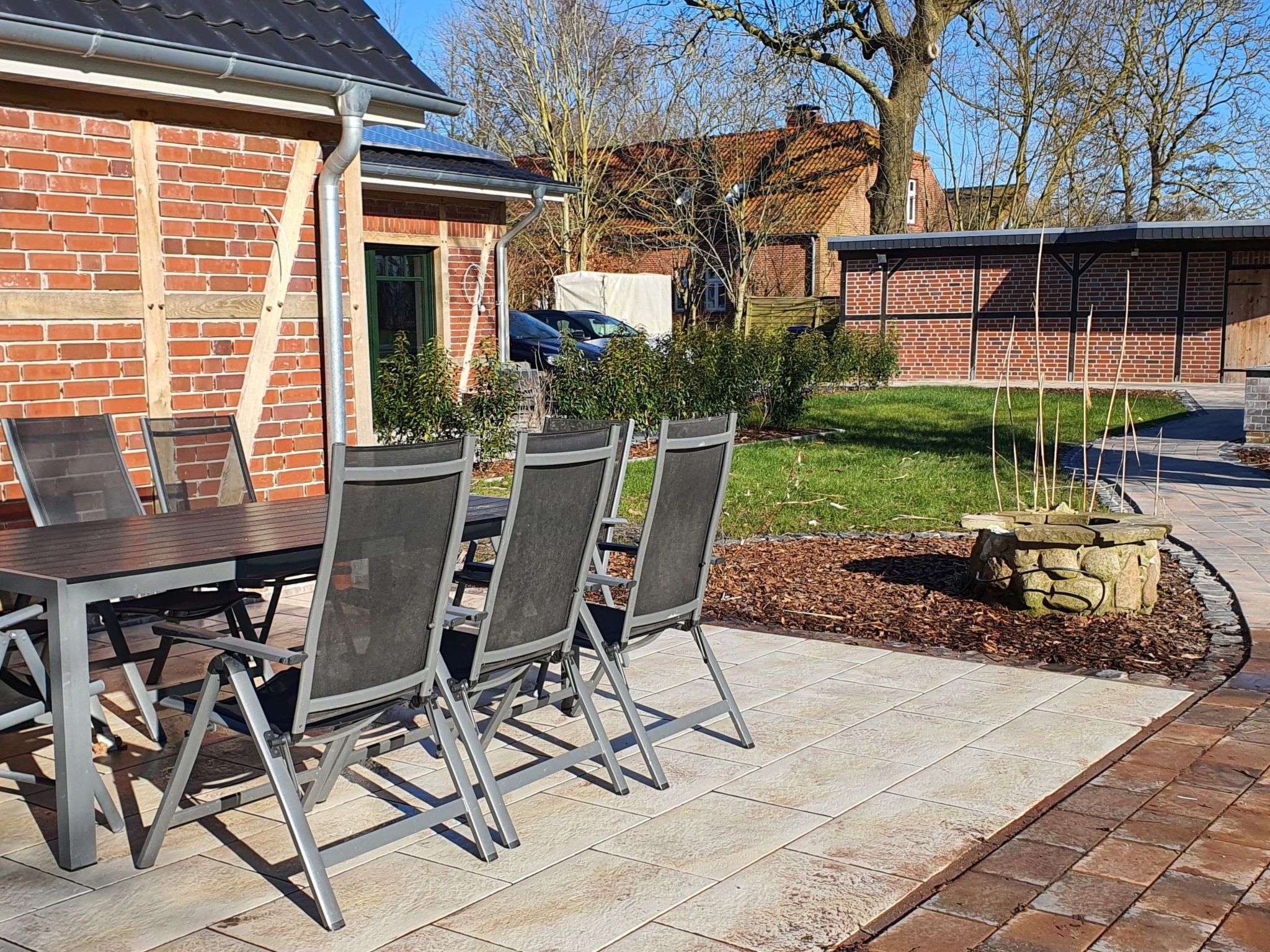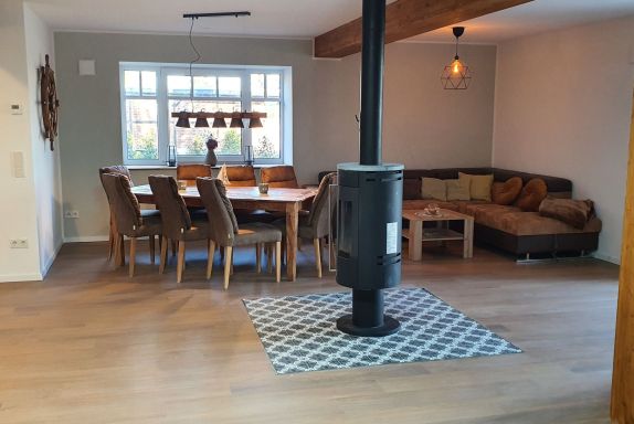 Entdecken Sie den Zauber des „Friesenhofs“, ein charmantes, kernsaniertes ehemaliges Bauernhaus im 2000 Jahre alten Wurten Dorf Sillens, einem malerischen Teil von Burhave auf der grünen Halbinsel Butjadingen. Nur zwei Kilometer vom Deich entfernt, vereint dieses Idyll modernen Komfort mit dem historischen Charme einer Fachwerkfassade. Ein perfekter Rückzugsort für alle, die die Kombination aus Tradition und Moderne inmitten der Natur zu schätzen wissen. Die Erdgeschosswohnung „Landblick“ überzeugt mit ihren großzügigen 140 m², die nicht nur durch Fußbodenheizung und einen 65 TV inklusive Kamin im Wohnzimmer sondern auch durch moderne Annehmlichkeiten brillieren. Jedes Schlafzimmer ist mit einem TV und elektrischen Rollläden ausgestattet, während zwei moderne Bäder keine Wünsche offenlassen. Die vollausgestattete Küche bietet reichlich Platz für kulinarische Entdeckungen und die angrenzende Kinderspielecke sichert Entspannung für die ganze Familie. Außerhalb der Wohnung lädt das ca. 3.500 m² große Grundstück zum Entdecken ein: Ein 9x4m großer Außenpool (nicht beheizt und nur in der Hauptsaison nutzbar), eine Außensauna sowie ein freundlich gestalteter Kinderspielbereich mit Spielturm und Sandkasten bieten vielfältige Möglichkeiten zur Erholung und Freizeitgestaltung. Diese Außenanlagen machen den Friesenhof zu einem begehrten Ziel für Natur- und Wellnessliebhaber, die Ruhe und Entspannung im Grünen suchen. Gekonnt eingebettet in die ländliche Idylle der Halbinsel Butjadingen, genießt der „Friesenhof“ eine privilegierte Lage, die zu ausgedehnten Spaziergängen am Deich und Erkundungstouren der umliegenden Natur einlädt. Die besondere Lage verspricht sowohl Erholung als auch Abenteuer in der Natur und lässt Besucher den Alltagsstress schnell vergessen. Für alle, die sich über lokale Abgaben informieren möchten, bietet die offizielle Seite von Butjadingen aktuelle Details zur Kurtaxe. Der „Friesenhof“ in Sillens ist ein außergewöhnlicher Ort, der Tradition, Komfort und Naturerlebnis in einem bietet. Ob Sie in der „Landblick“-Wohnung Ruhe und Erholung suchen, im Pool entspannen oder die atemberaubende Landschaft Butjadingens erkunden möchten – hier finden Sie den idealen Ausgangspunkt für unvergessliche Ferien. Gönnen Sie sich und Ihren Liebsten eine Auszeit vom Alltag und erleben Sie erholsame Tage in einem Ambiente, das keine Wünsche offenlässt. Basisinformationen - Erlaubte Haustiere: keins - Art d. Gebäudes: Mehrparteienhaus - Etage, auf der sich das Objekt befindet: EG - Grundstücksfläche: 3500 m² - keine Einsicht von der Straße - Nichtraucherunterkunft - Schlafzimmeranzahl: 4 - Badezimmeranzahl: 2 Top Merkmale - WLAN - Heizung: überall - Fußbodenheizung: überall - Terrasse - Garten: zur gemeinschaftlichen Nutzung - Outdoorpool - ㄴ maximale Tiefe: 140 cm - ㄴ Länge: 900 cm - ㄴ Breite: 400 cm - Private PKW-Stellplätze insgesamt für diese Unterkunft: 2 - ㄴ davon Garagenstellplätze: keinen - ㄴ davon Carport-Stellplätze: 1 - ㄴ davon private Außenstellplätze: 2 Schlafen Schlafzimmer 1 - Doppelbett (größer als 1,80 m Breite) - Kinder-/Babybett - Schlafzimmer abdunkelbar Schlafzimmer 3 - Doppelbett (1,80m Breite) - Kinder-/Babybett - Schlafzimmer abdunkelbar Schlafzimmer 5 - Doppelbett (1,80m Breite) - Schlafzimmer abdunkelbar Schlafzimmer 7 - 2x Einzelbett - Schlafzimmer abdunkelbar Badezimmer Badezimmer 1 - Dusche - Badewanne - Waschbecken - Toilette - Föhn - Tageslicht Badezimmer 3 - Dusche - Waschbecken - Toilette - Föhn - Tageslicht Wellness - Sauna Kochen/Wohnen - Kaffeemaschine: Filter-Kaffeemaschine, Pads-Kaffeemaschine - Kühl-/Gefrierschrank: Gefrierfach, Kühlschrank - Herd: Glaskeramikkochfeld - Dunstabzugshaube - Backofen - Toaster - Mikrowelle - Wasserkocher - Spülmaschine - Geschirrtücher - Größe der Küche: 7 m² - Anzahl Esstische: 1 - Gesamtzahl Sitzplätze: 8 - Anzahl Wohnzimmer: 1 Entertainment - Fernseher: Sat.-TV - Musikanlage Für Kinder - Kinderstuhl - Kinderspielzeug - Gesellschaftsspiele für Kinder Hauswirtschaft - Waschmaschine: zur alleinigen Nutzung im Objekt - Staubsauger - Rauchmelder Nachhaltigkeit - Bioabfall verfügbar - Erneuerbare Energien - Hausisolierung Außenbereich - Outdoormöbel - Grill: Holzkohlegrill - Außendusche Umgebung - nächstgelegene Ortsmitte: 2,0 km - Lebensmittelhandel: 2,0 km - Bars/Clubs/Ausgehen: 2,0 km - Cafés/Restaurants: 2,0 km - Bahnhof: 15,0 km - Flughafen: 63,0 km - Autobahn: 25,0 km - Hafen: 20,0 km - nächste Haltestelle ÖPNV: 500 m - Strand: 2,0 km - Wasser (Meer, See etc.): 1,0 km - Öffentliches Schwimmbad: 4,0 km - Fahrrad-Verleih: 2,0 km Besonderheiten - Bauernhaus