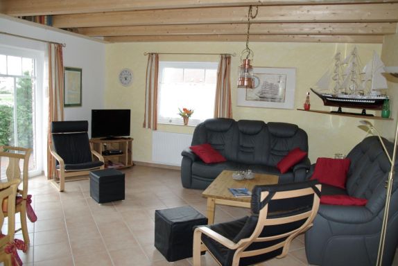 Das Haus befindet sich gegenüber von den Häusern Kiek-Wiet und Wiesenblick Fenja in einem absolut ruhigen Wohngebiet (Sackgasse).Das Haus liegt in Grimersum (ca. fünf km nach Greetsiel). Zwei Stellplätze sowie ein Carport gehören zum Anwesen. Im Gartenhaus befindet sich das Gartenmobiliar und ein Grill. Genießen Sie ein Sonnenbad oder herrliche Grillabende auf der Südterrasse. Es bietet vier Schlafzimmern (eins davon im Erdgeschoss) und zwei Duschbädern für acht Personen ausgestattet (ideal auch für zwei Familien). Die Sauna und der Kaminofen laden für einen Urlaub nicht nur im Sommer ein. Die schöne Holzbalkendecke und die maritime Einrichtung verleihen dem Haus einen ganz besonderen Charakter. Im Erdgeschoß befindet sich der großzügige Wohn-/Essbereich mit großen Türen, die auf die Süd-Terrasse führen. Die Küche ist mit Backofen, Mikrowelle und Geschirrspüler und vielem mehr voll ausgestattet. Im direkt angrenzenden Abstellraum sind Waschmaschine und Trockner untergebracht. Im Erdgeschoß-Bad findet sich neben der Dusche, dem WC, ein Bidet und auch die Sauna. Eines der (Eltern-) Schlafzimmer (mit Doppelbett) ist im Erdgeschoß untergebracht und somit für die Mitnahme der Großeltern interessant. Im Obergeschoß sind drei weitere Schlafzimmer (eines mit Doppelbett, zwei mit je zwei einzelnen Betten) und ein weiteres Dusch-Bad.Hinweis zum W-LAN: Leider lassen die Anbieter nur eine maximale Internetgeschwindigkeit von UMTS zu. Der Bootshafen ist nur 40 m entfernt, der dort befindliche Kanal hat eine Verbindung nach Greetsiel und Emden; im Sommer per (Paddel-) Boot, im Winter teilweise per Schlittschuh. Ein schöner öffentlicher Spielplatz ist nur wenige Schritte entfernt, so dass man die Kinder auch alleine dorthin lassen kann. Ein Restaurant und Einkaufsmöglichkeiten findet man in Ca. 3 km. Keine Vermietung an Monteure. Basisinformationen - Erlaubte Haustiere: 1 - erlaubte Hundegröße: mittel (30 bis 60 cm) - Unterkunftstyp: Ferienhaus - befindet sich in: Wohnsiedlung - Art d. Gebäudes: Einfamilienhaus - Gesamtanzahl d. Stockwerke im Gebäude über EG: 1 - Grundstücksfläche: 1230 m² - Baujahr: 2010 - freistehend - keine Gruppenbuchung - kontaktloser Check-in/out - keine Jugendgruppen - Nichtraucherunterkunft - Höhe über dem Meeresspiegel: 3 - Schlafzimmeranzahl: 4 - Badezimmeranzahl: 2 Top Merkmale - WLAN - Heizung: überall - Fußbodenheizung: teilweise - Terrasse - Garten: zur alleinigen Nutzung - Private PKW-Stellplätze insgesamt für diese Unterkunft: 2 - ㄴ davon Garagenstellplätze: keinen - ㄴ davon Carport-Stellplätze: 1 - ㄴ davon private Außenstellplätze: 1 Schlafen Schlafzimmer 1 - Doppelbett (1,80m Breite) - Kinder-/Babybett Schlafzimmer 3 - Doppelbett (1,80m Breite) Schlafzimmer 5 - 2x Einzelbett Schlafzimmer 7 - 2x Einzelbett Badezimmer Badezimmer 1 - Dusche - Waschbecken - Toilette - Bidet - Föhn Badezimmer 3 - Dusche - Waschbecken - Toilette Wellness - Sauna Kochen/Wohnen - Kaffeemaschine: Filter-Kaffeemaschine - Kühl-/Gefrierschrank: Gefrierfach, Kühlschrank - Herd: Herd - Backofen - Toaster - Mikrowelle - Wasserkocher - Spülmaschine - Größe der Küche: 7 m² - Anzahl Esstische: 1 - Gesamtzahl Sitzplätze: 8 - Anzahl Wohnzimmer: 1 - Kamin Entertainment - Fernseher: Sat.-TV - DVD-Player - Musikanlage - Radio - CD-Player Für Kinder - Kinderstuhl - Gesellschaftsspiele für Kinder Hauswirtschaft - Waschmaschine: zur alleinigen Nutzung im Objekt - Wäschetrockner: zur alleinigen Nutzung im Objekt - Bügeleisen - Staubsauger Außenbereich - Grill: Grill Umgebung - nächstgelegene Ortsmitte: 1 m - Lebensmittelhandel: 6 m - Bars/Clubs/Ausgehen: 5 m - Cafés/Restaurants: 6 m - Bahnhof: 15 m - Flughafen: 140 m - Autobahn: 14 m - Hafen: 16 m - nächste Haltestelle ÖPNV: 300 m - Strand: 5 m - Hundestrand: 15 m - Wasser (Meer, See etc.): 50 m - Meer: 6 m - Fluss: 16 m - Wassersport: 40 m - Angelplatz: 30 m - Spielplatz: 30 m - Öffentliches Schwimmbad: 6 m - Golfplatz: 18,0 km - Fahrrad-Verleih: 6 m - Reitmöglichkeit: 4 m