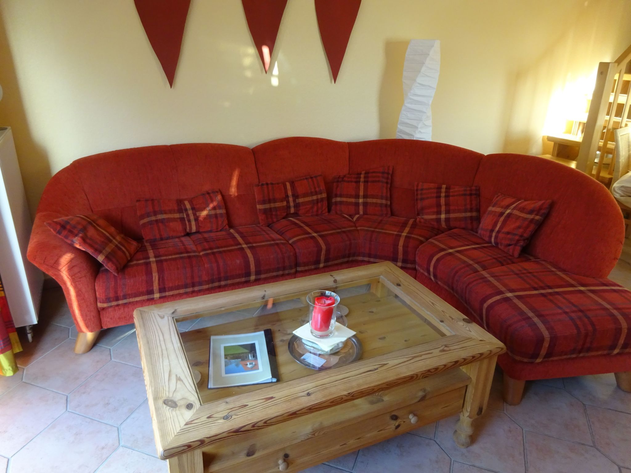 Diese 60 m² große Doppelhaushälfte liegt in einer kleinen Ferienhaussiedlung in Dornumergrode ca. zwei Kilometer vom Strand entfernt. Auf der Terrasse befinden sich hochwertige Gartenmöbel aus Holz. Man kann dort gemütlich sitzen und bei einem guten Glas Wein die Natur bewundern und dabei entspannen. Im Garten steht auch ein Gerätehäuschen, das viel Platz für Fahrräder, Bollerwagen und Spielzeug bietet. Einer Anreise mit dem PKW steht nichts im Wege, da es am Ferienhaus einen Gemeinschaftsparkplatz mit festem Stellplatz gibt. Die verschiedenen Zimmer sind auf zwei Etagen verteilt. Im Obergeschoss befinden sich zwei Schlafzimmer. Ein Schlafzimmer verfügt über ein Doppelbett (180 x 200 cm) und das andere Schlafzimmer ist mit zwei Einzelbetten (je 90 x 190 cm), sowie einer Dusche und einem WC ausgestattet. Von einem der beiden Schlafzimmer aus, kann man bis zur Insel Baltrum schauen. Im Erdgeschoss befindet sich das Wohnzimmer. Es ist gemütlich eingerichtet und bietet zur Unterhaltung einen Farbfernseher, einen DVD-Spieler, ein Radio und Spiele, wenn das Wetter einmal nicht so schön ist. Die Küche ist mit allen notwendigen Geräten ausgestattet, um nicht nur kochen, sondern auch backen zu können. Nach dem Kochen übernimmt die Spülmaschine die restliche Arbeit, damit einem entspannten Essen nichts mehr im Wege steht. Aber auch das Frühstück kann gut beginnen, dafür sorgen die Kaffeemaschine, der Toaster und der Wasserkocher. Das Badezimmer im Erdgeschoss verfügt über eine Dusche, ein Waschbecken, ein WC und eine Waschmaschine. Dornumergrode liegt zwischen Dornumersiel (2000 m) und Neßmersiel (5000 m), ein kleiner 300-Seelen-Ort. Hier im Kluntje-Pott gibt es morgens frische Brötchen und Zeitungen, sowie die besten selbstgebackenen Kuchen. Bis Dornum sind es drei Kilometer. Dort findet man neben drei Supermärkten (ALDI, NETTO, EDEKA), auch verschiedene Restaurants, die die typischen friesischen Spezialitäten anbieten und viele Sehenswürdigkeiten. Bei einem Spaziergang am „Weltkulturerbe Wattenmeer“ oder im Binnenland genießen Sie die Natur pur. Angler kommen hier oder an einigen Binnenseen auf ihre Kosten. Oder man geht durch den Ort spazieren und entdeckt dabei die vielen kleinen Geschäften. Wer möchte, kann von verschiedenen Anlegestellen aus, eine Fähre besteigen und sich zu den Inseln Juist, Norderney, Baltrum, Langeoog oder Spiekeroog übersetzen lassen. Ein Reisebett und ein Hochstuhl stehen kostenfrei zur Verfügung. Haustiere sind allergiebedingt nicht erlaubt. Es ist kein WLAN vorhanden, aber im Reethaus am Meer in Dornumersiel ca. zwei Kilometer vom Haus entfernt, kann man kostenfrei WLAN benutzen. Basisinformationen - Erlaubte Haustiere: keins - Unterkunftstyp: Ferienhaus - befindet sich in: nichts zutreffend - Art d. Gebäudes: Doppelhaushälfte - Gesamtanzahl d. Stockwerke im Gebäude über EG: 2 - Grundstücksfläche: 400 m² - Baujahr: 1999 - letzte umfassende Renovierung: 2014 - keine Jugendgruppen - Nichtraucherunterkunft - Schlafzimmeranzahl: 2 - Badezimmeranzahl: 2 Top Merkmale - Heizung: überall - Fußbodenheizung: teilweise - Terrasse - Private PKW-Stellplätze insgesamt für diese Unterkunft: 1 - ㄴ davon Garagenstellplätze: keinen - ㄴ davon Carport-Stellplätze: keinen - ㄴ davon private Außenstellplätze: 1 Schlafen Schlafzimmer 1 - Doppelbett (1,80m Breite) - Kinder-/Babybett - Schlafzimmer abdunkelbar Schlafzimmer 3 - 2x Einzelbett - Schlafzimmer abdunkelbar Badezimmer Badezimmer 1 - Dusche - Waschbecken - Toilette - Tageslicht Badezimmer 3 - Dusche - Waschbecken - Toilette - Tageslicht Kochen/Wohnen - Kaffeemaschine: Kaffeemaschine - Kühl-/Gefrierschrank: Gefrierfach, Tiefkühlschrank, Kühlschrank - Herd: Herd - Backofen - Toaster - Mikrowelle - Wasserkocher - Spülmaschine - Anzahl Esstische: keine - Gesamtzahl Sitzplätze: keine - Wohnzimmer abdunkelbar Entertainment - Fernseher: TV, Antenne/DVBT-TV, Sat.-TV - Musikanlage - Radio - CD-Player Für Kinder - Kinderstuhl Hauswirtschaft - Bügeleisen - Staubsauger Außenbereich - Grill: Holzkohlegrill Umgebung - Lebensmittelhandel: 2,0 km - Bars/Clubs/Ausgehen: 5,0 km - Cafés/Restaurants: 100 m - Bahnhof: 20,0 km - Flughafen: 20,0 km - Autobahn: 40,0 km - nächste Haltestelle ÖPNV: 1,0 km - Strand: 2,0 km - Grasstrand: 2,0 km - Betonstrand: 2,0 km - Sandstrand: 5,0 km - Meer: 2,0 km - Wassersport: 2,0 km - Bootsverleih - Angelplatz: 2,0 km - Öffentliches Schwimmbad: 2,0 km - Reitmöglichkeit: 300 m