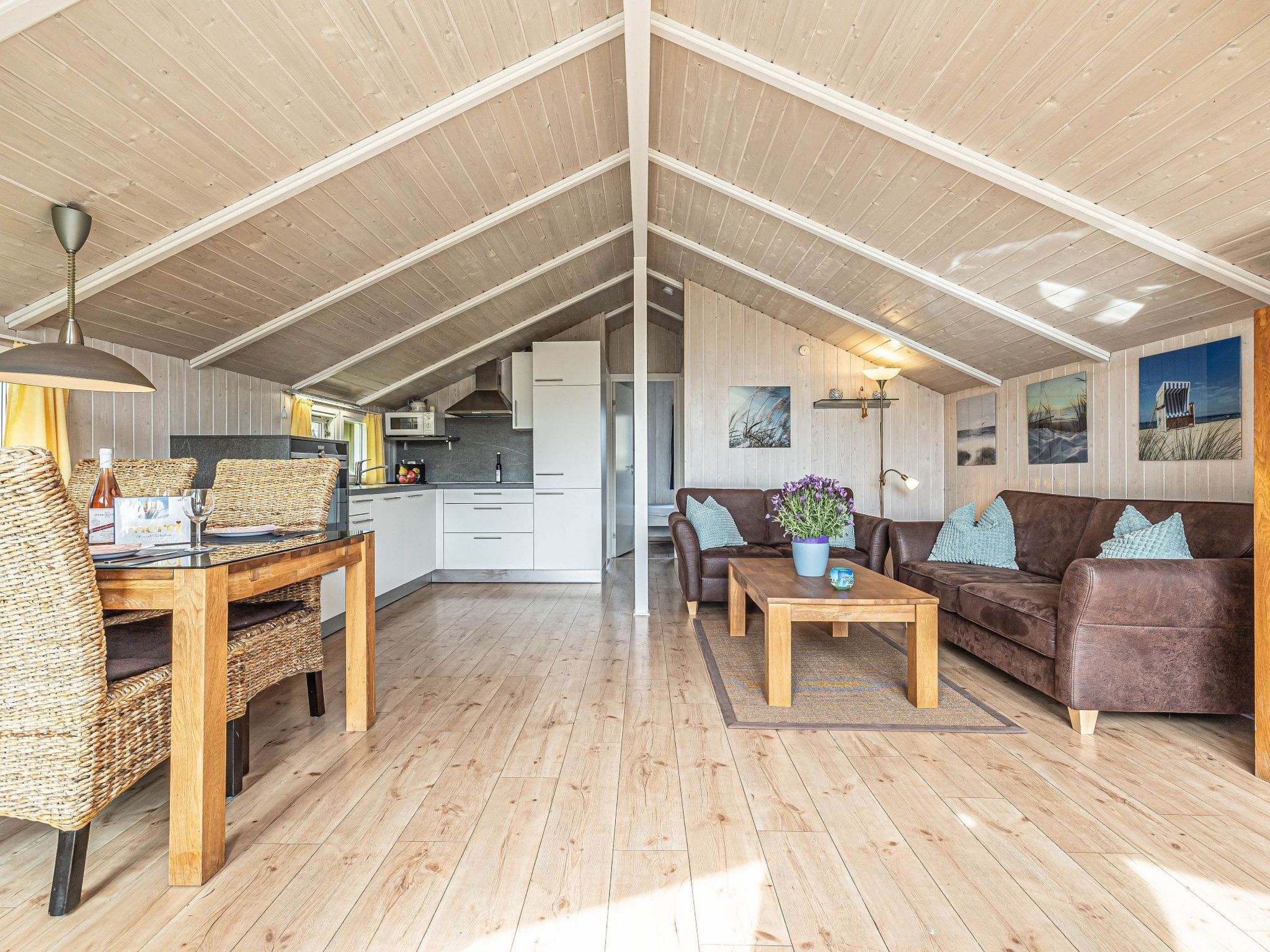 Entdecken Sie die perfekte Auszeit in unserem idyllischen Ferienhaus in Brodersby-Schönhagen an der malerischen Ostseeküste. Dieses charmante Domizil bietet alles, was Sie für einen entspannten und unvergesslichen Aufenthalt benötigen. Eingebettet in die Ruhe einer Privatstraße, ist es der ideale Rückzugsort für bis zu 4 Personen und ihre vierbeinigen Freunde. Mit seiner warmen Atmosphäre und der Nähe zum Strand bietet unser Ferienhaus den perfekten Rahmen für eine erholsame Auszeit am Meer. Das Innere des Hauses zeichnet sich durch seine wohl durchdachte Ausstattung aus, die keine Wünsche offenlässt. Zwei gemütliche Schlafzimmer laden zum Träumen ein, eines mit einem Doppelbett und das andere mit zwei Einzelbetten ausgestattet. Für gemütliche Abende sorgt das großzügige Wohn- und Esszimmer, ergänzt durch Annehmlichkeiten wie SAT-TV und einen Internetzugang mit Glasfaseranschluss. Die Einbauküche ist mit allem ausgestattet, was das Herz begehrt, von der Geschirrspülmaschine bis zur Mikrowelle. Eine Waschmaschine steht zudem zur alleinigen Nutzung bereit. Im Außenbereich erwartet Sie ein liebevoll angelegter Garten zur alleinigen Nutzung, der zum Verweilen und Genießen einlädt. Die Terrasse ist möbliert und mit einem Grill ausgestattet – perfekt für lauschige Abende unter freiem Himmel. Für Gäste, die auf der Suche nach Entspannung sind, bietet die hochwertige Fasssauna ein exklusives Saunavergnügen. Das gesamte Grundstück ist zudem hundesicher durch einen Zaun abgegrenzt, sodass auch Ihre vierbeinigen Begleiter unbeschwert den Urlaub genießen können. Die Umgebung unseres Ferienhauses könnte nicht verlockender sein. Nur etwa 500 Meter trennen Sie von einem schönen Strand, einem freundlichen Hundestrand sowie reizvollen Wassersportmöglichkeiten. Auch der Lebensmittelhandel ist bequem zu Fuß erreichbar. Die unmittelbare Nähe zum Meer und zum See lädt zu ausgedehnten Spaziergängen und zu Erkundungstouren in die Natur ein. Die beeindruckende Steilküste ist ein weiteres Highlight, das Sie in nur wenigen Minuten erreichen können. In unserem Ferienhaus in Brodersby-Schönhagen finden Sie die ideale Kombination aus friedvoller Ruhe, komfortabler Wohnkultur und der unmittelbaren Nähe zur Ostsee. Ob Sie erholsame Tage am Strand verbringen, spannende Ausflüge in die Umgebung unternehmen oder einfach nur die Seele im eigenen Garten baumeln lassen möchten – hier ist für jeden etwas dabei. Machen Sie unser Ferienhaus zu Ihrem Zuhause auf Zeit und genießen Sie unvergessliche Momente in Schleswig-Holstein. Basisinformationen - Erlaubte Haustiere: 2 - erlaubte Hundegröße: mittel (30 bis 60 cm) - Unterkunftstyp: Ferienhaus - befindet sich in: Wohnsiedlung - Art d. Gebäudes: Einfamilienhaus - Etage, auf der sich das Objekt befindet: EG - Gesamtanzahl d. Stockwerke im Gebäude über EG: 0 - Grundstücksfläche: 392 m² - Baujahr: 1994 - letzte umfassende Renovierung: 2021 - freistehend - keine Einsicht von der Straße - keine Jugendgruppen - Nichtraucherunterkunft - Schlafzimmeranzahl: 2 - Badezimmeranzahl: 1 Top Merkmale - WLAN - Heizung: überall - Fußbodenheizung: keine - Terrasse - Garten: zur alleinigen Nutzung - komplett eingefriedet (mit Mauer, Zaun oder Hecke) - hundesicher durch einen Zaun (komplett eingezäunt) - Private PKW-Stellplätze insgesamt für diese Unterkunft: 2 - ㄴ davon Garagenstellplätze: keinen - ㄴ davon Carport-Stellplätze: keinen - ㄴ davon private Außen­stellplätze: 2 Schlafen Schlafzimmer 1 - Doppelbett (1,80m Breite) - Kinder-/Babybett Schlafzimmer 3 - 2x Einzelbett Badezimmer Badezimmer 1 - Dusche - Waschbecken - Toilette Wellness - Sauna Kochen/Wohnen - Kaffeemaschine: Kaffeemaschine - Kühl-/Gefrierschrank: Gefrierfach, Kühlschrank - Herd: Herd - Dunstabzugshaube - Backofen - Toaster - Mikrowelle - Wasserkocher - Spülmaschine - Anzahl Esstische: 1 - Gesamtzahl Sitzplätze: 4 - Anzahl Wohnzimmer: 1 - Wohnzimmer abdunkelbar - Kamin - Ofen Entertainment - Fernseher: TV, Antenne/DVBT-TV, Sat.-TV - Musikanlage - Radio Für Kinder - Kinderstuhl Hauswirtschaft - Waschmaschine: zur alleinigen Nutzung im Objekt - Bügeleisen - Staubsauger - Rauchmelder Nachhaltigkeit - Abfallrecycling - Bioabfall verfügbar - Wassersparende Geräte Außenbereich - Outdoormöbel - Grill: Holzkohlegrill - Außendusche Umgebung - Lebensmittelhandel: 500 m - Bars/Clubs/Ausgehen: 500 m - Cafés/Restaurants: 500 m - Bahnhof: 30,0 km - Autobahn: 45 m - Strand: 500 m - Hundestrand: 500 m - Sandstrand: 500 m - Wasser (Meer, See etc.): 500 m - Meer: 500 m - See: 500 m - Wassersport: 500 m - Angelplatz: 500 m - Öffentliches Schwimmbad: 10 m Besonderheiten - Anglerfreundlich