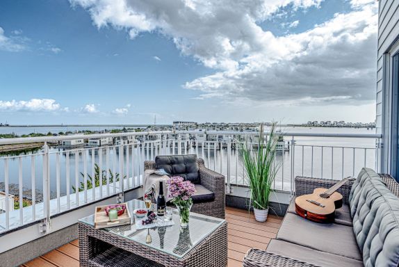 Atraveo: Exclusive Doppelhaushälfte Lootsen Hus by Seeblick Ferien ORO auf 3 Ebenen, in einzigartiger Lage im OstseeResorts zwischen Schlei und Hafen, mit 127 qm Wohnfläche, Terrasse und Dachterrasse, Kamin, Sauna, Badewanne mit Whirlpoolfunktionen– und faszinierendem Weitblick auf Hafen, Schlei und Ostsee!Großer lichtdurchfluteter Wohn- und Eßbereich im Erdgeschoß, separate Küche, 2 Schlafzimmer mit hochwertigem Doppelbetten im Obergeschoß. Einen Wohn-/Schlafbereich auf der Galerie im 2. Obergeschoß mit bequemem Schlafsofa und herrlichem Blick. Eine weitere Schlafcouch im unteren Wohnbereich, sowie 2 Duschen bieten im Maximalfall selbst 7 Personen noch genügend Raum zum Wohlfühlen. Für diesen Fall stehen dann auch 2 Parkplätze direkt vor der Haustür (kostenlos) zur Verfügung!Dieses Haus stellt wirklich ein ABSOLUTES HIGHLIGHT dar! Die Wohnung bietet Kamin, Sauna und Badewanne mit Whirlpoolfunktionen. !****Strom- und Wasserkosten sind nicht im Reisepreis enthalten und werden separat nach Verbrauch abgerechnet. Bettwäsche und Handtücher können in Form von Wäschepaketen direkt bei der Agentur Seeblick Ferien ORO gebucht werden, Ihre Betten wären dann bei Anreise bereits bezogen****!Eine Kaution ist bei Anreise in BAR zu hinterlegen, diese wird sofort beim Check Out nach Abzug der Verbrauchskosten, zurückerstattet. Das Ostseeresort Olpenitz befindet sich momentan noch in einem ständigen Wandel mit Bautätigkeit. Dies ist bei der Preisberechnung bereits berücksichtigt und stellt keinen Mangel dar. Direkt an der Ostsee entsteht in einer der schönsten Urlaubsregionen Deutschlands, im Nordosten Schleswig-Holsteins direkt zwischen Schleimündung und Ostsee ein neues, einzigartiges Ferienresort der Extraklasse, das durch seine Vielfalt besticht. Das Ostseeresort Olpenitz soll Nordeuropas größtes maritimies Ferienresort werden. Eingebettet in eine unvergleichliche Natur, ausgestattet mit allem, was den Aufenthalt das ganze Jahr über angenehm und abwechslungsreich macht: eine große Marina, Restaurants, Cafés, Shops und ein Freizeitangebot, das keine Wünsche für eine neue Erlebnis-Urlaubs-Welt offen läßt. Vor Ort erwarten Sie folgende Highlights: Fußläufig zum traumhaften, kilometerlangen, DLRG-betreuten Weidefelder Strand . Dieser hat mehrere Strandabschnitte (allgemeines Baden, FKK, Hundestrand und zum weltweit einmaligen Flachwasser Windsurf und Kite- Revier). Hier befindet sich auch ein gemütliches Strandrestaurant mit Strandkorbverleih, Toiletten und einem Spielplatz. Bäckerwagen mit frischen Brötchen, Eis und weiteren Köstlichkeiten, Edeka Supermarkt, Yachthafen mit Promenade, frischer Fisch direkt vom Kutter, Ausflugs-Traditionssegler, Kanuverleih und Optimisten Segelkurse der Globetrotter Akademie, Bootsverleih und BBQ-Donut Verleih der Olpenitz Marina, Food Trucks mit kulinarischem Angebot zu ausgewählten Terminen und natürlich spektakuläres Hafenkino. Das kleine verträumte Dorf Olpenitz ganz in der Nähe (3 km entfernt) mit seinen schönen (Reet-) Häusern bietet Restaurants und Einkaufsmöglichkeiten ebenso wie der bekannte Fischerort Kappeln an der Schlei mit kleinem Hafenbetrieb in ca. 7 km Entfernung. Kappeln wurde u. a. auch bekannt unter dem Namen Deekelsen aus der beliebten Fernsehserie Der Landarzt. Ein Ausflug nach Bad Arnis, Deutschlands kleinster Stadt oder nach Eckernförde zur Aalregatta oder zum Piratenspektakel im August oder nach Sieseby, dem wunderschönen Fachwerksdorf direkt an der Schlei und sich dann von der Gourmetküche im „Schlei-Krog“ verwöhnen lassen. Oder, oder, oder.. Solch eine Lage gibt es in Deutschland an der gesamten Ostseeküste wohl kaum noch ein zweites Mal! Wer einen ruhigen naturnahen Urlaub liebt, dürfte hier sicherlich “seine schönste Zeit des Jahres” verbringen können, auch wenn Umfeld und Infrastrukur im Ostseeresort Olpenitz momentan noch einem ständigen Wandel mit Bautätigkeit unterliegt. Dies ist bei der Preisberechnung bereits berücksichtigt und stellt keinen Mangel dar. Basisinformationen - Erlaubte Haustiere: 2 - erlaubte Hundegröße: groß (über 60 cm) - befindet sich in: Ferienpark - Art d. Gebäudes: Doppelhaushälfte - Gesamtanzahl d. Stockwerke im Gebäude über EG: 2 - keine Jugendgruppen - Nichtraucherunterkunft - Schlafzimmeranzahl: 2 - Badezimmeranzahl: 2 Top Merkmale - WLAN - Fußbodenheizung: überall - Balkon - Terrasse - Private PKW-Stellplätze insgesamt für diese Unterkunft: 2 - ㄴ davon Garagenstellplätze: keinen - ㄴ davon Carport-Stellplätze: keinen - ㄴ davon private Außenstellplätze: 2 Schlafen im Wohnbereich - 2x Schlafsofa 2 Personen Schlafzimmer 1 - Doppelbett (1,80m Breite) Schlafzimmer 9 - Doppelbett (1,80m Breite) Badezimmer Badezimmer 1 - Dusche - Waschbecken - Toilette Badezimmer 9 - Dusche Gäste-WC - Waschbecken - Toilette Kochen/Wohnen - Kaffeemaschine: Filter-Kaffeemaschine - Kühl-/Gefrierschrank: Gefrierfach, Kühlschrank - Herd: Glaskeramikkochfeld - Dunstabzugshaube - Backofen - Toaster - Mikrowelle - Wasserkocher - Spülmaschine - Anzahl Esstische: 1 - Gesamtzahl Sitzplätze: 8 - Anzahl Wohnzimmer: 1 Entertainment - Fernseher: TV - Musikanlage Hauswirtschaft - Waschmaschine: zur alleinigen Nutzung im Objekt - Staubsauger Außenbereich - Dachterrasse Umgebung - Aussicht: Meer/See - Lebensmittelhandel: 500 m - Wasser (Meer, See etc.): 10 m - Meer: 10 m